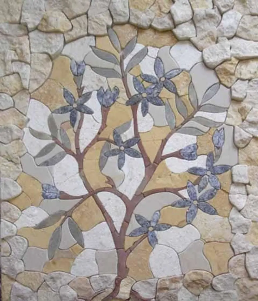 Tree Mosaic Stone Art That Is Ideal For Installation On Garden Walls To Go With The Theme.
