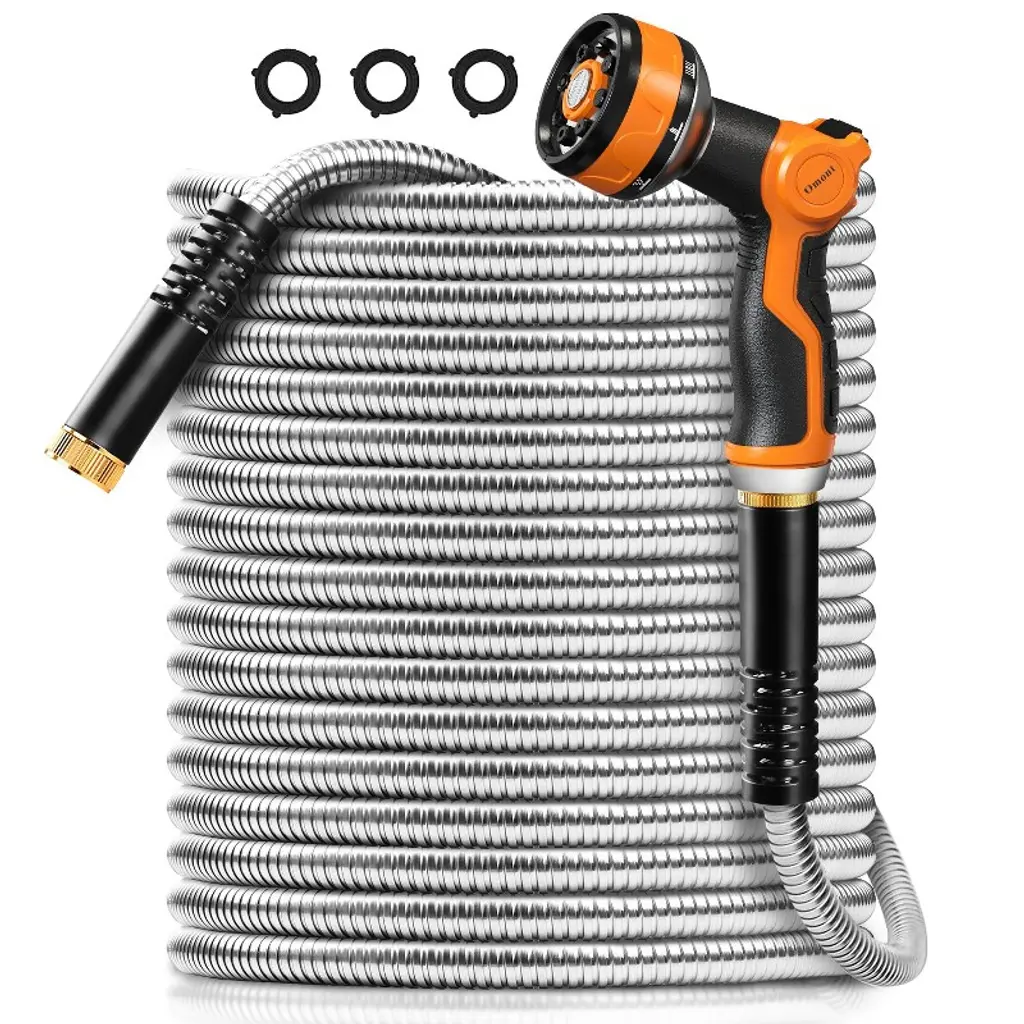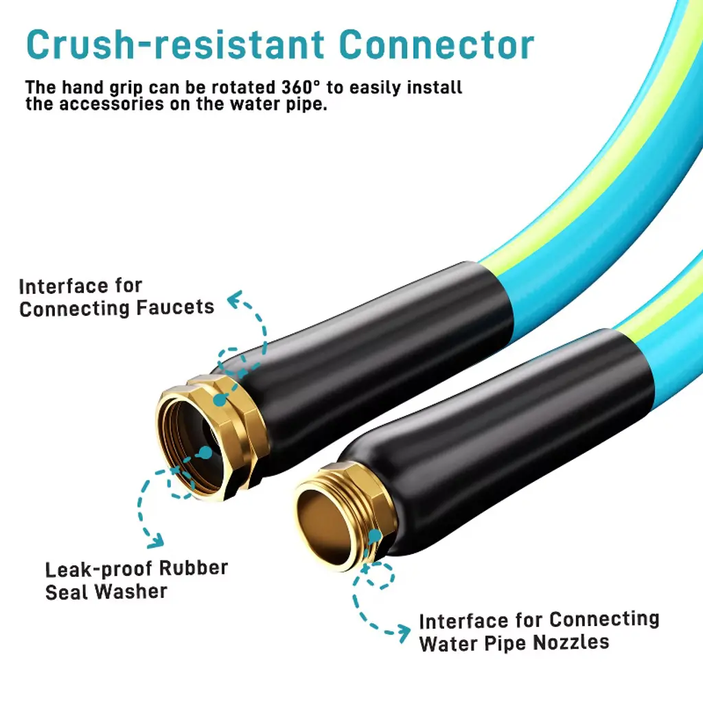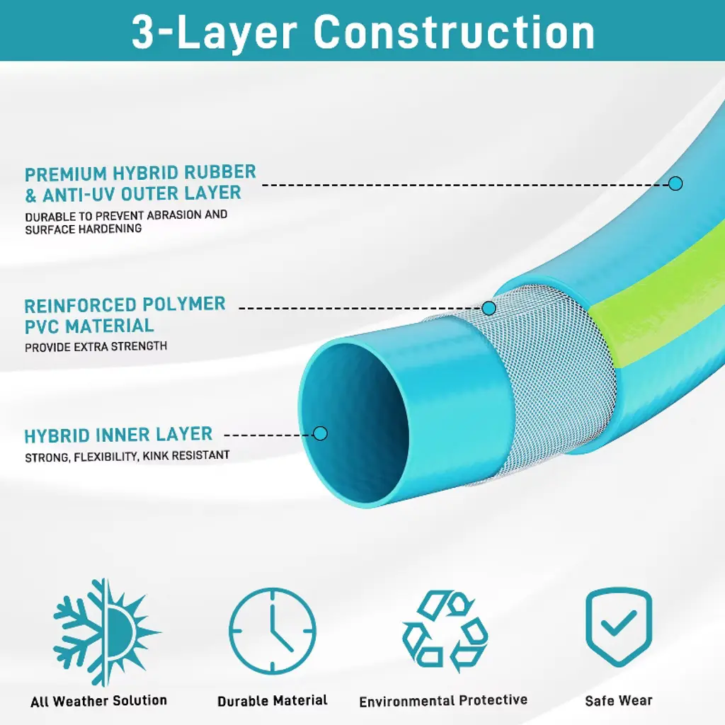 Upgrade your outdoor watering routine with this 5/8 in. x 100 ft. PVC Garden Hose, designed for durability, flexibility, and ease of use. Made from high-quality PVC and reinforced with braided wire, this lightweight yet commercial-grade hose resists wear, pressure, and corrosion—even in extreme temperatures ranging from 32°F to 140°F. Perfect for home gardening, lawn care, and even agricultural use, the hose features a 10-function spray nozzle to meet a wide range of watering needs—from gentle misting to powerful jet sprays. A smooth inner wall ensures consistent water flow, while the protective cover at the connection point prevents kinking near the faucet. Whether you're a professional landscaper or a weekend gardener, this versatile and dependable hose is built to handle the job. Includes 10-function sprayer nozzle for versatile watering Heavy-duty PVC material resists wear, corrosion, and pressure Lightweight and flexible—easy to carry and store Reinforced with braided wire for extra durability Withstands temperatures from 32°F to 140°F Protective connector prevents kinks near the faucet Ideal for home gardens, lawns, or agricultural use 5/8 in. inner diameter with 100 ft. length