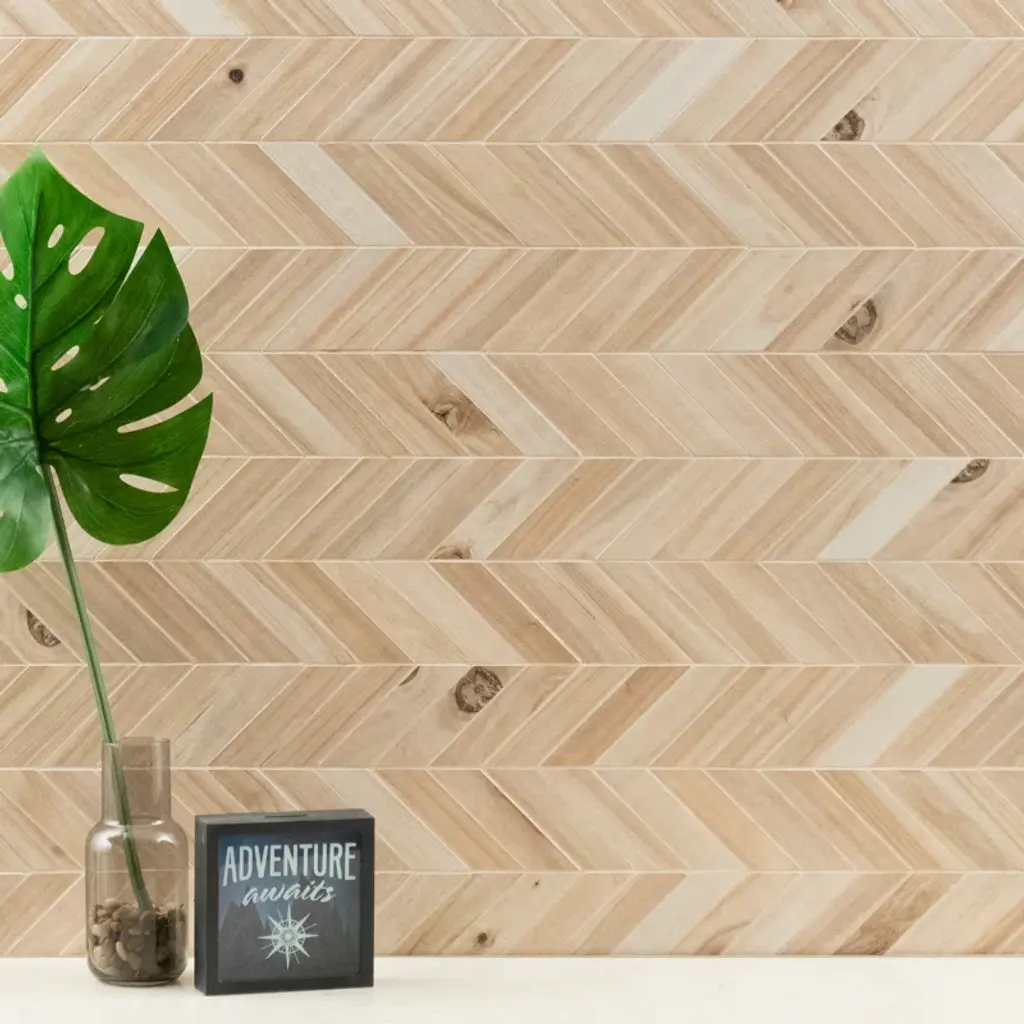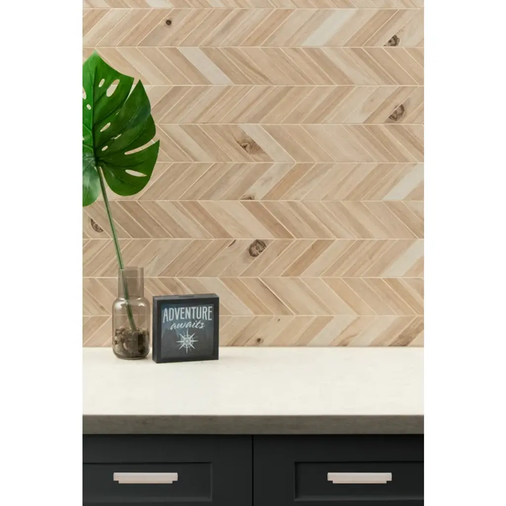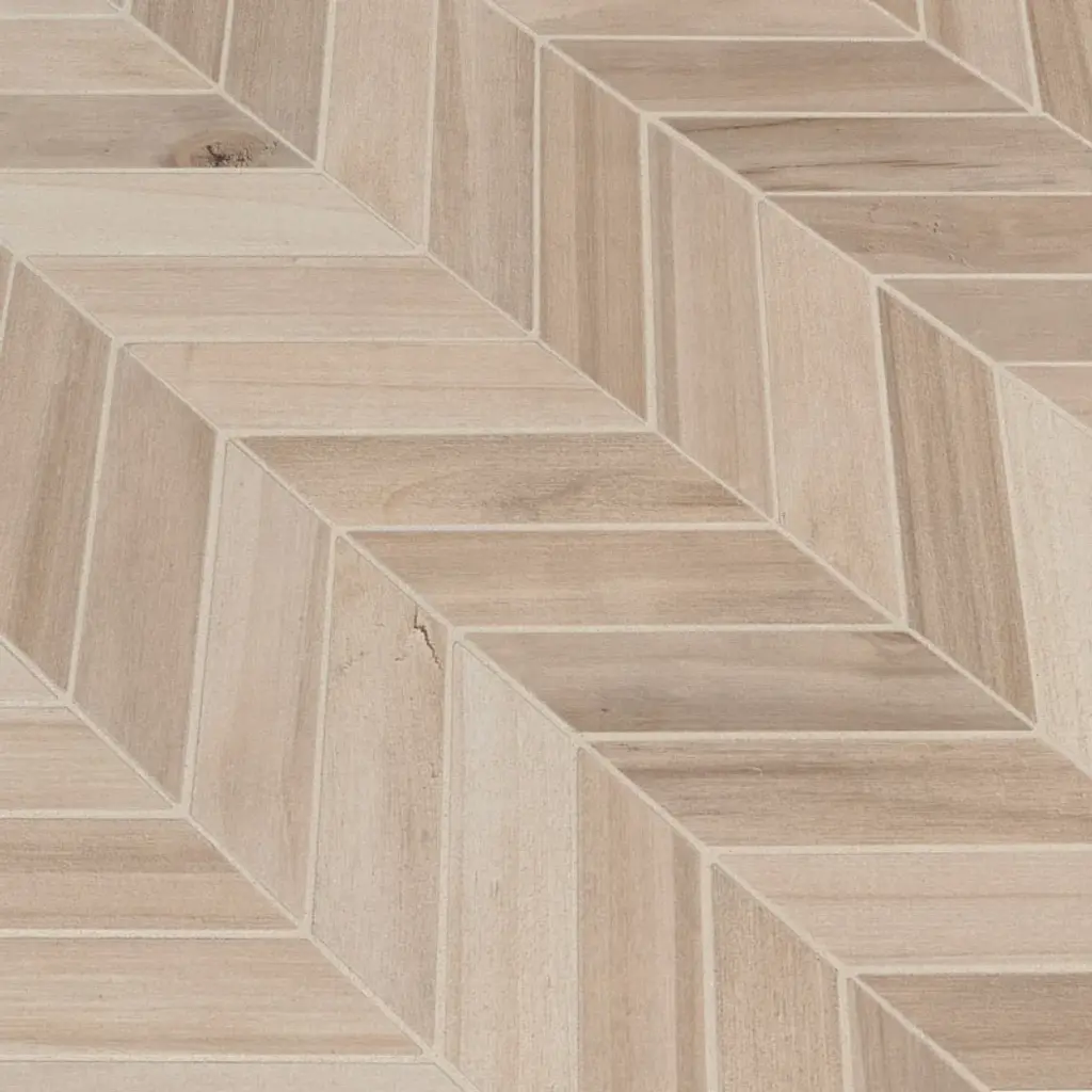 Ground your space in warmth and natural texture with Gardenpark 12" x 15" matte porcelain chevron mosaic tile, thoughtfully designed to capture the authentic beauty of handcrafted wood in a durable porcelain format. Featuring intricate grain patterns and organic knotting, this wood look tile brings rustic charm and contemporary style together through its timeless chevron layout. The soft matte finish enhances walls and floors with a subtle sheen, making it ideal for transforming kitchens, bathrooms, entryways, and more. Available in rich brown, versatile gray, and soft cream shades, Gardenpark tile complements a variety of color palettes and design aesthetics. Crafted for both residential and light commercial applications, it offers long lasting performance, low maintenance, and enduring visual appeal.