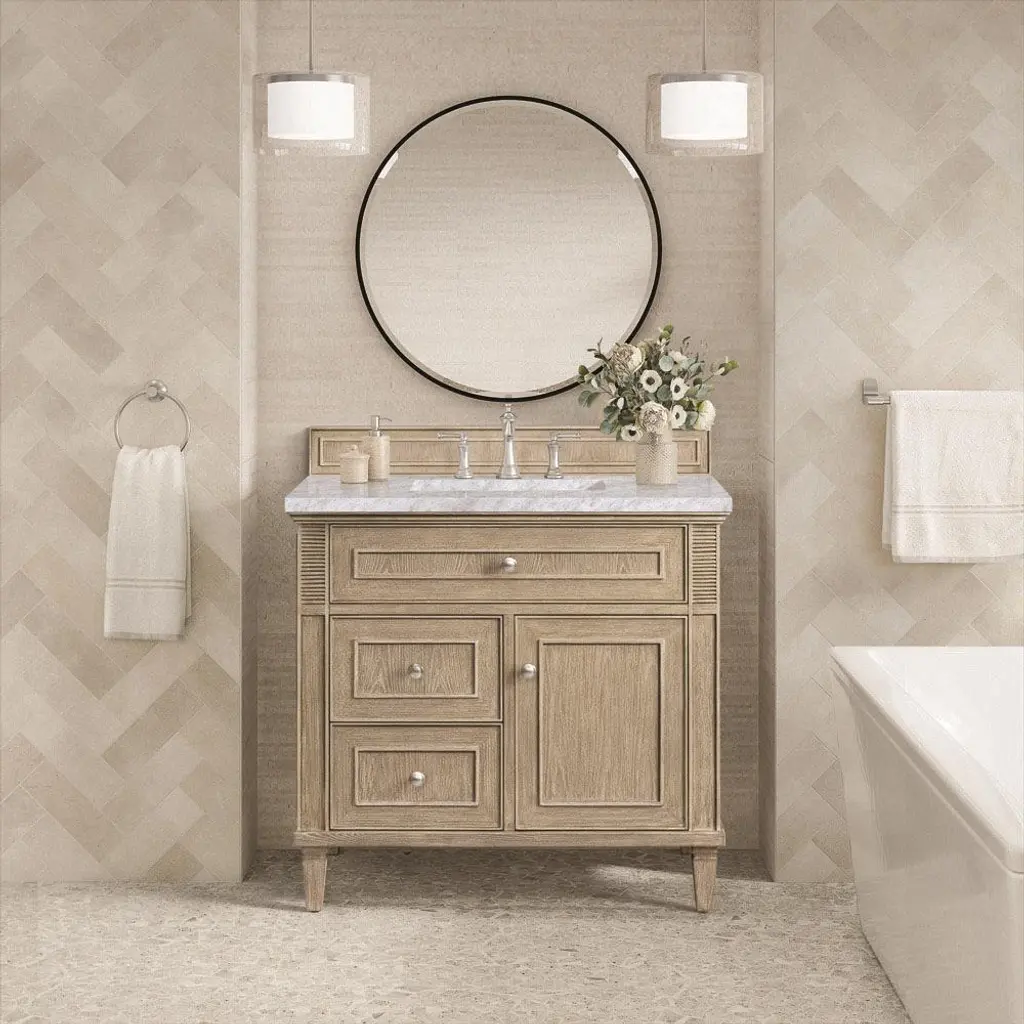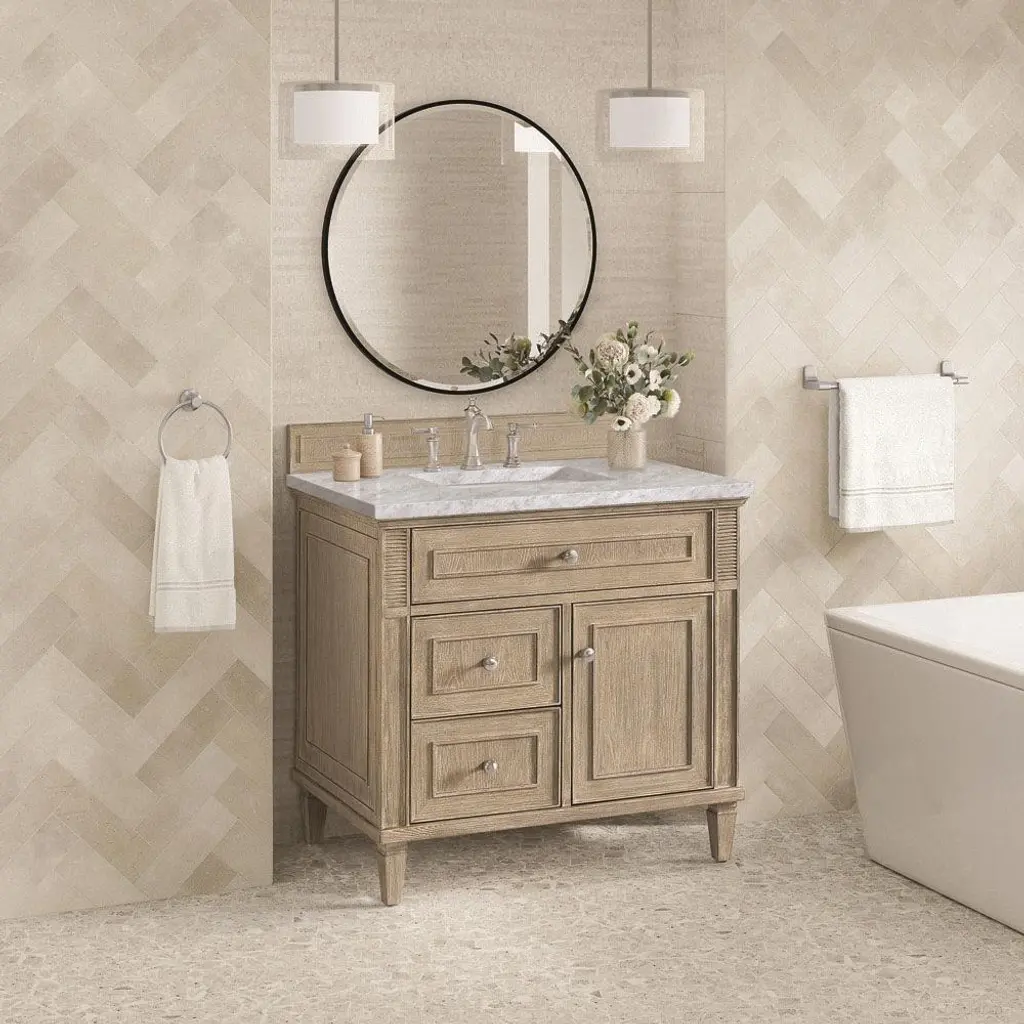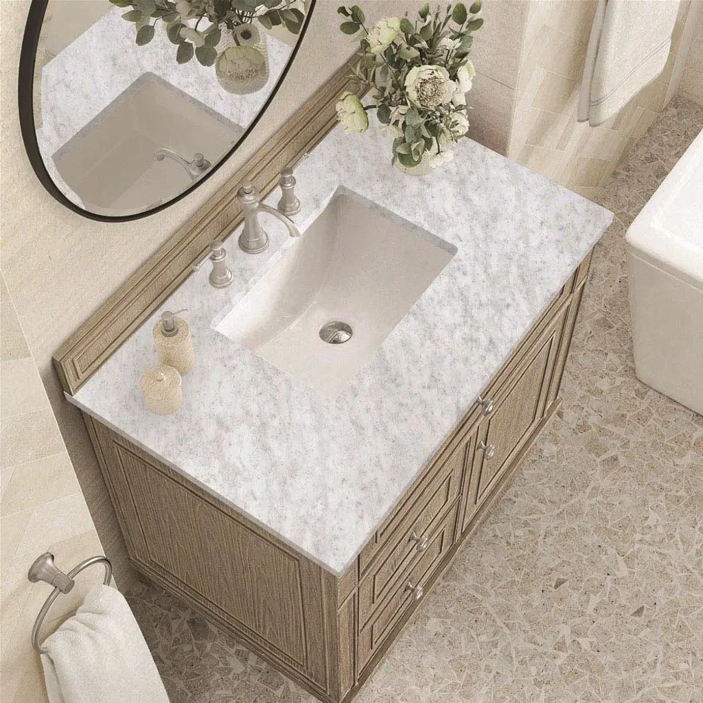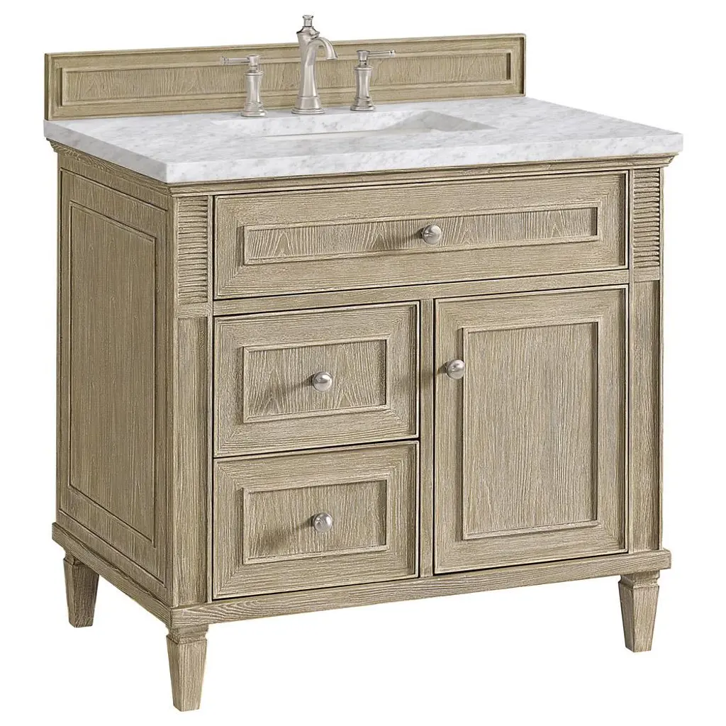 Gareth French Country Carrara Marble Whitewashed Wood Vanity Sink - 36"