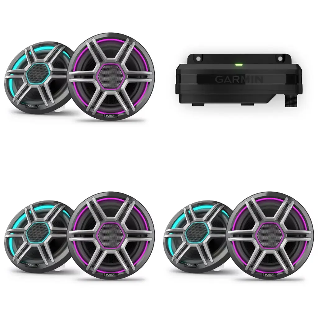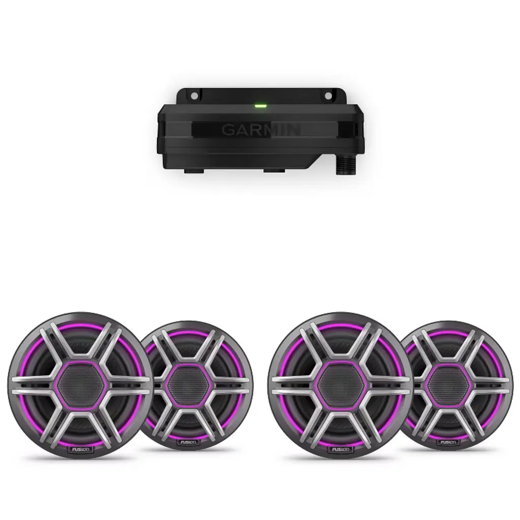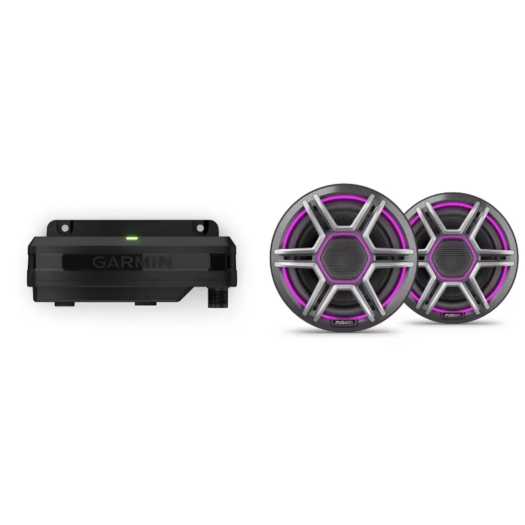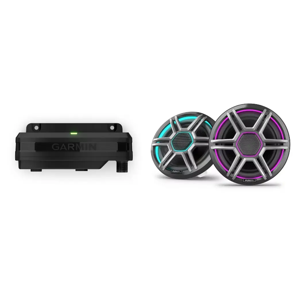 Set the vibe for your boat rides with this bundle featuring a Garmin Spectra LC302 LED lighting controller and 2x Garmin Fusion Apollo 7.7" LED marine speakers with sport grills. The Garmin Spectra LC302 allows you to control LED lights on your boat, assigning different groups for various areas like cup holders and speakers. Sync the lights to your music for added fun and ambiance. Compatible with Fusion and boat speakers, this module offers premium lighting control via MFD or ActiveCaptain app. It has IP66/IP67 water rating, weighs 5.57 oz, and operates within a wide temperature range. The unit dimensions are 7.76" x 2.05" x 1.85" and available with a 2-year warranty. The Garmin Fusion Apollo speakers offer premium sound quality with reduced distortion, reaching a peak power of 400W and RMS power of 100W. The dual-hue LED lighting rings add a unique touch, with interchangeable grilles included. These coaxial speakers have an IP66/IP67 rating, 91 dB sensitivity, and a frequency response of 60 Hz - 22 kHz. With a compact mounting depth of 3.39" and mounting diameter clearance of 6.14", these speakers are designed to withstand harsh marine conditions. Elevate your boating experience with this bundle, enhancing both the lighting and audio aspects of your vessel for a truly immersive and enjoyable time on the water.