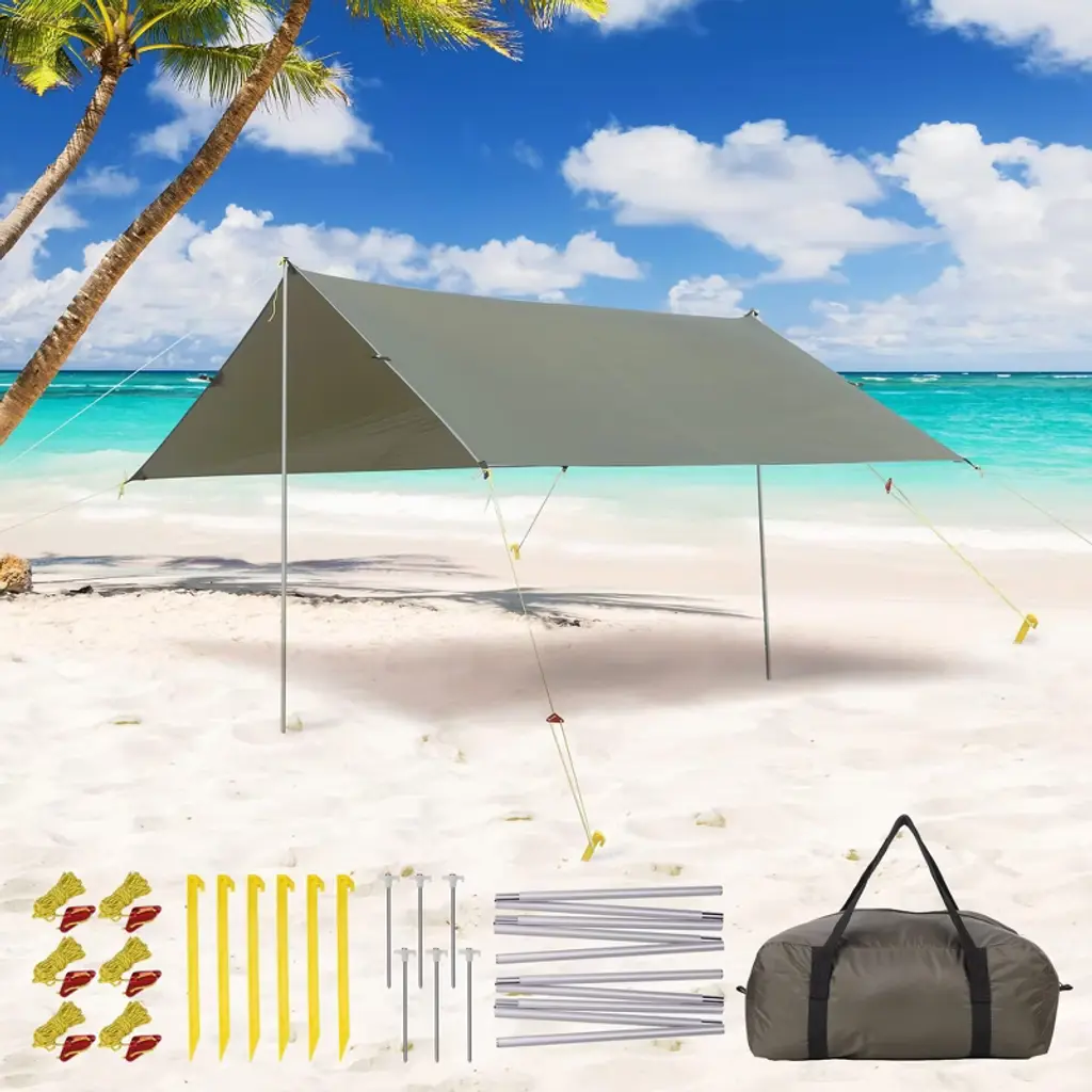 Garvee 10x9ft Camping Tarp, Hammock Rain Fly Camping Tarp Waterproof With 2 Aluminum Poles, Lightweight Backpack Tent Tarp For Traveling, Green