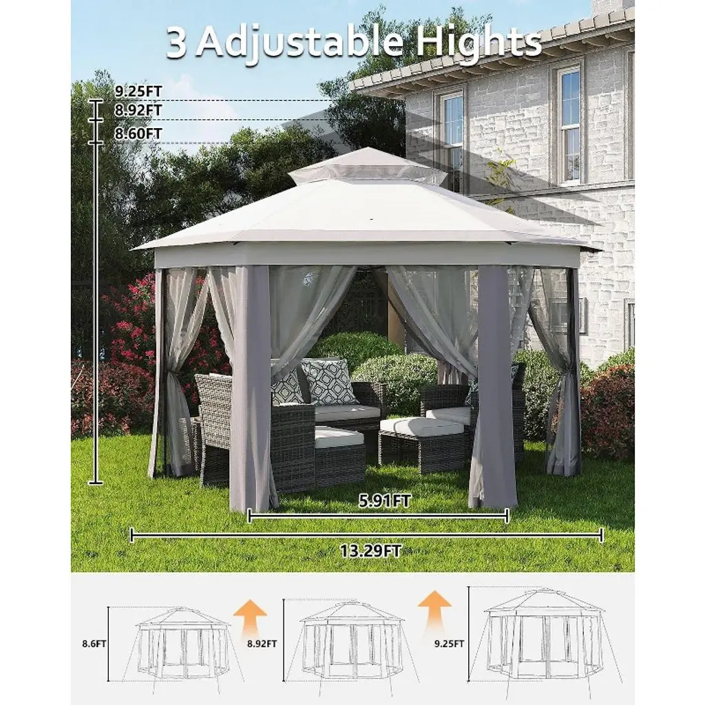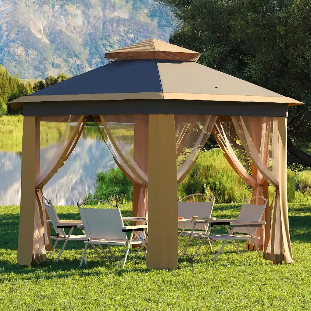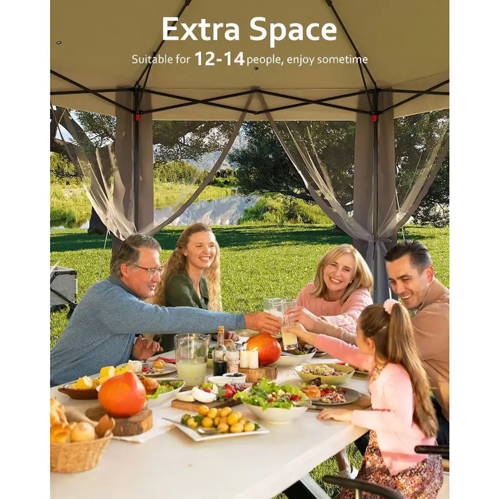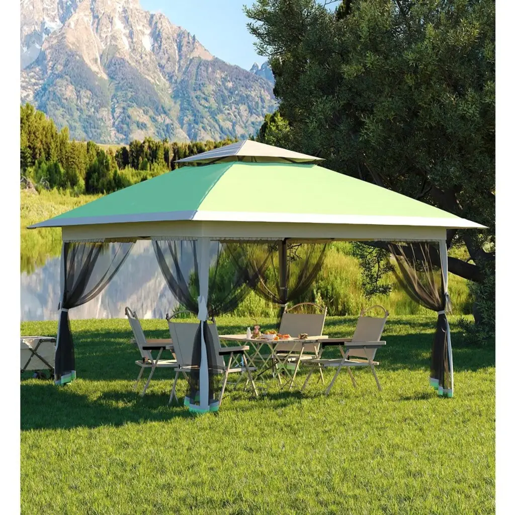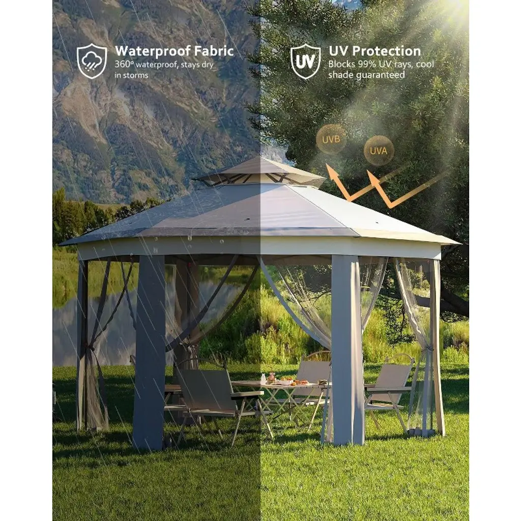 Garvee 13x13 Pop Up Gazebo,outside Canopy Tent With 6 Pcs Mosquito Netting, Double-layer Pop Up Canopy For Backyard & Patio Furniture,gray