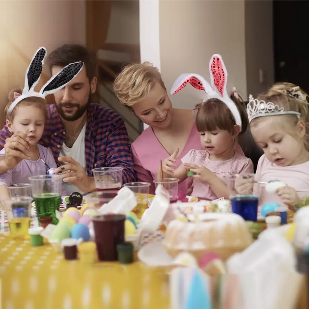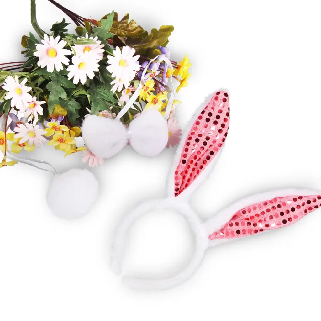 Bunny Ears Headbands Tail Bow Tie Set 18 Pcs, Easter Rabbit Ear Hairbands Hats for Kids Party Favors, Outdoor Games