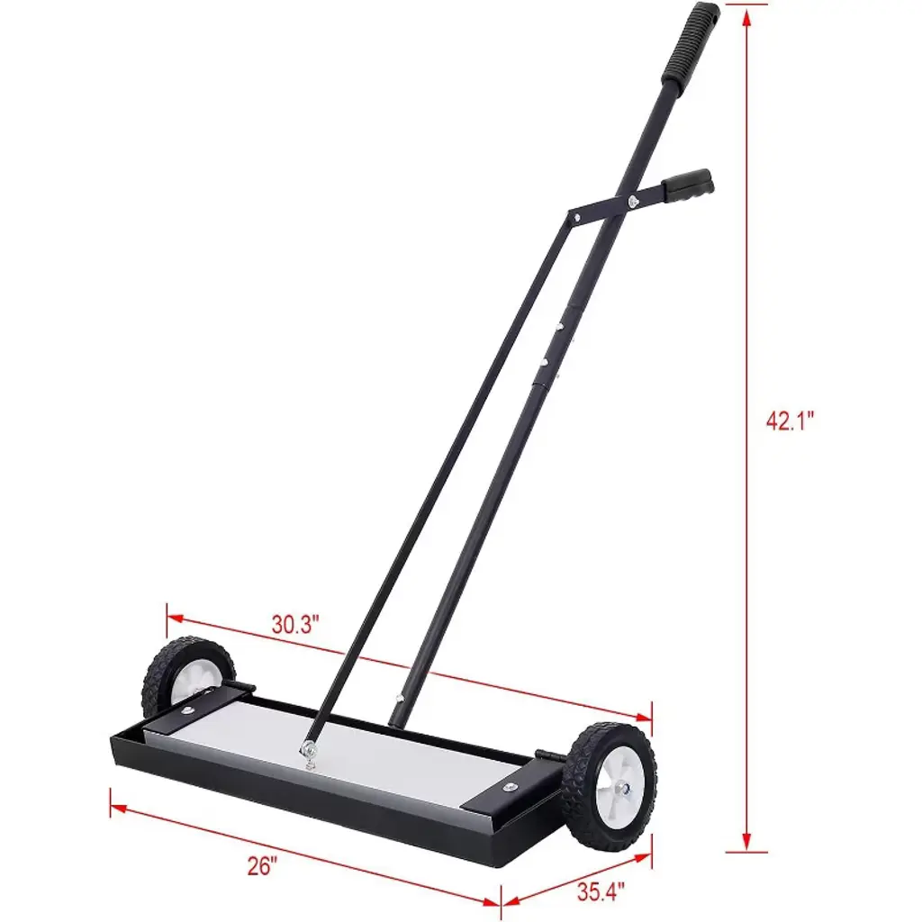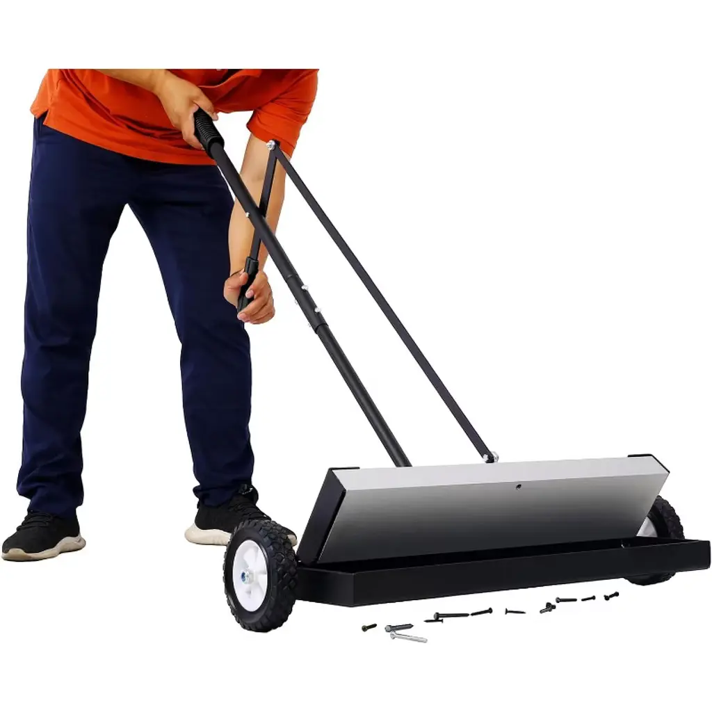 Garvee 24-inch Rolling Magnetic Pick-up Sweeper, 100lbs Capacity Quick Release Sweeper, Heavy Duty Magnetic Pickup Tool For Nails Screws Collection