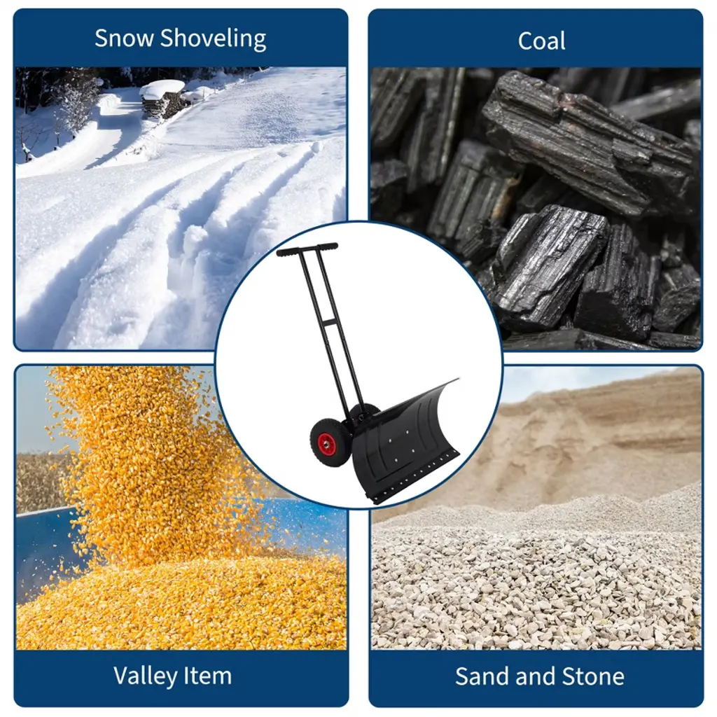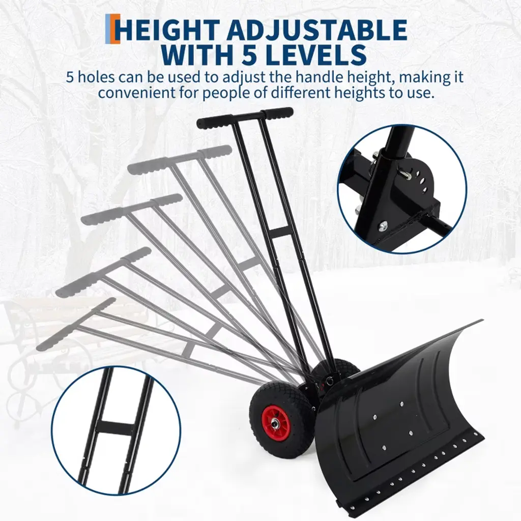 Garvee 29" W Snow Pusher Shovel Pusher With Wheels For Driveway, Snow Shovel With Snow Removal Adjustable Angle & Height Handle, Double Rod
