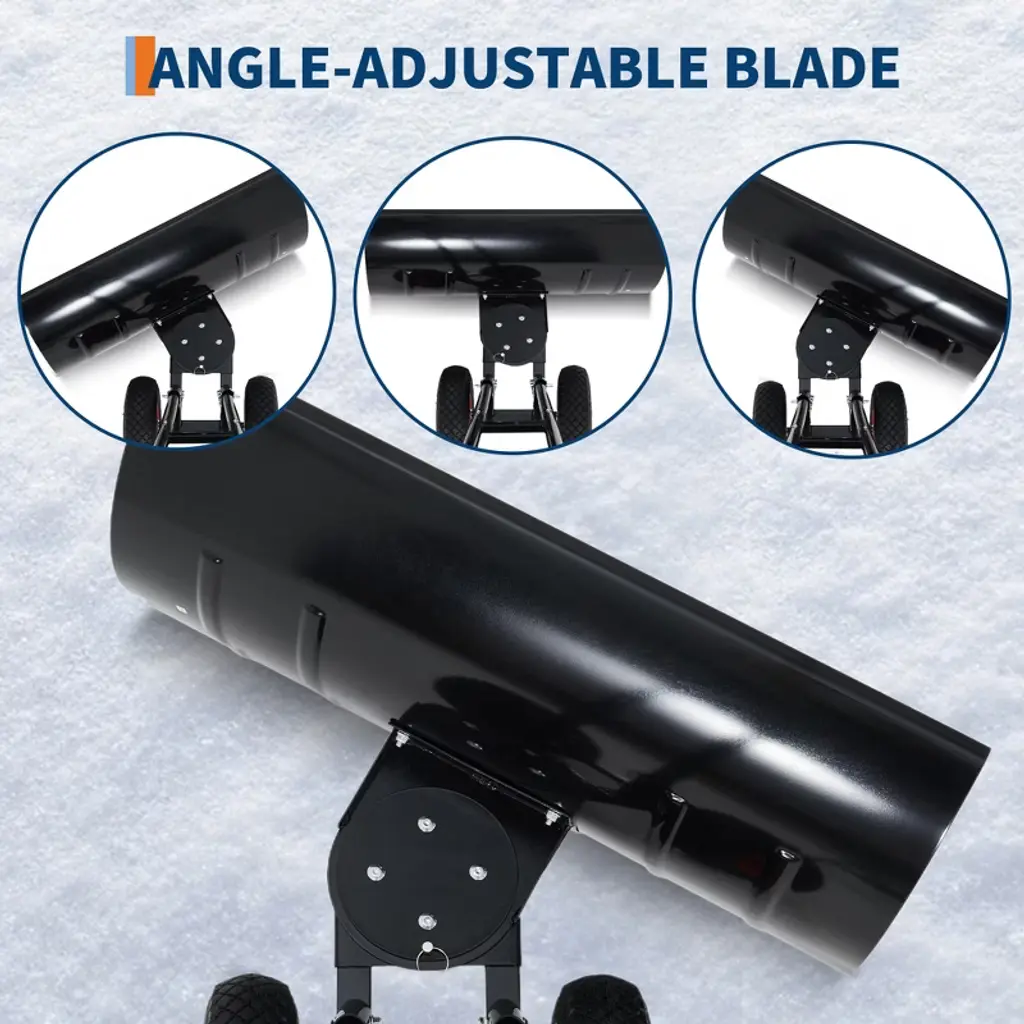 The multi-angle blade locks into five positions, adapting to different snow depths and surfaces. Simply adjust the angle for optimal snow pushing efficiency, saving time and energy. This flexibility makes clearing driveways, sidewalks, and decks easier than ever before. Constructed with a premium sprayed metal frame, this snow pusher is both rustproof and resistant to deformation. Resistant to cracks, rust, and wear, it withstands heavy snow and icy conditions year after year. No more worrying about blade damage from frequent use! Two 10" anti-slip rubber wheels ensure stable traction on slippery surfaces, preventing slips and falls. Thanks to detailed instructions and numbered parts, assembly is a breeze with our snow pusher. This snow pusher is compact and can be easy to store when not in use. Enjoy a stress-free shoveling experience.