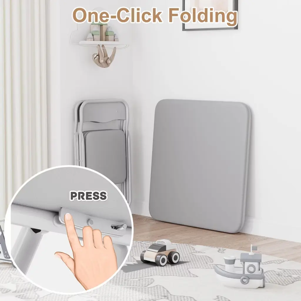 Garvee 3-piece Boys And Girls Folding Set, Table And Chairs W/pu Cushion, No Assembly, For Eating/reading/playing, Grey