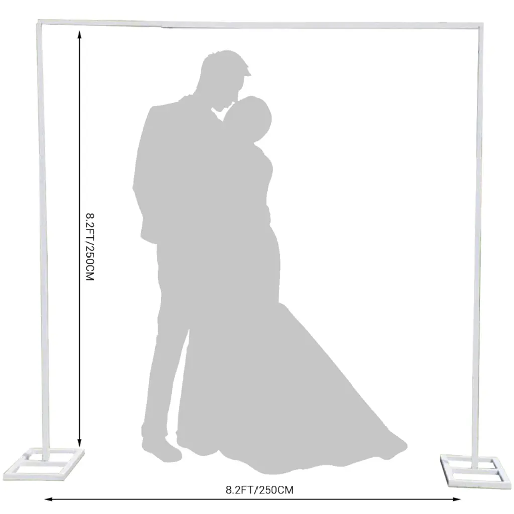 Introducing the 8FT x 8FT Metal Square Backdrop Stand, the perfect addition to your special events and celebrations. Crafted from durable metal, this square arch backdrop stand is designed to provide a sturdy and elegant frame for your decorations. Whether you're planning a wedding, anniversary ceremony, birthday party, or any indoor or outdoor celebration, this versatile arch stand serves as an ideal backdrop for balloons, flowers, and other decorative elements.Key Features:- Sturdy Metal Construction: Built with high-quality metal, this arch stand ensures stability and durability for long-lasting use.- Perfect Size: Measuring 8 feet by 8 feet (2.5 meters), it offers ample space to create stunning decorative displays.- Versatile Design: Suitable for weddings, parties, anniversaries, and various celebrations, both indoors and outdoors.- Easy to Assemble: Designed for quick and hassle-free setup, allowing you to focus on your event.- Multi-Purpose Use: Ideal for balloon arches, floral arrangements, and other decorative backdrops.Enhance your celebration with this elegant wedding backdrop stand. Its square arch design not only adds a modern touch but also provides a reliable structure to showcase your creativity. Whether you're a professional event planner or organizing a personal celebration, this metal arch backdrop stand is an excellent choice to elevate your event decor.Make your special moments unforgettable with the 8FT x 8FT Metal Square Backdrop Stand – the perfect foundation for beautiful, memorable celebrations.