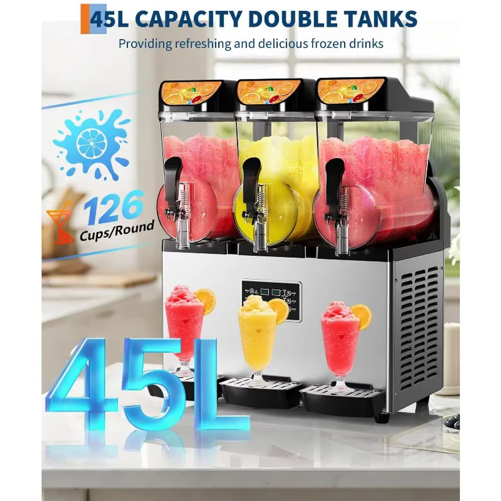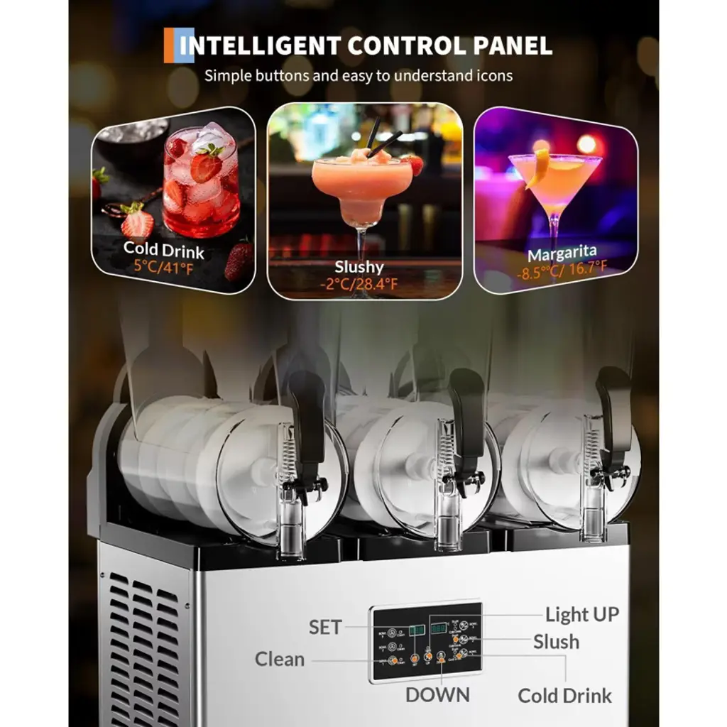 Garvee Commercial Slushy Machine, 30l/3.9 Gal, 2-flavor Frozen Drink Margarita Machine, 900w Stainless Steel Slushie Maker