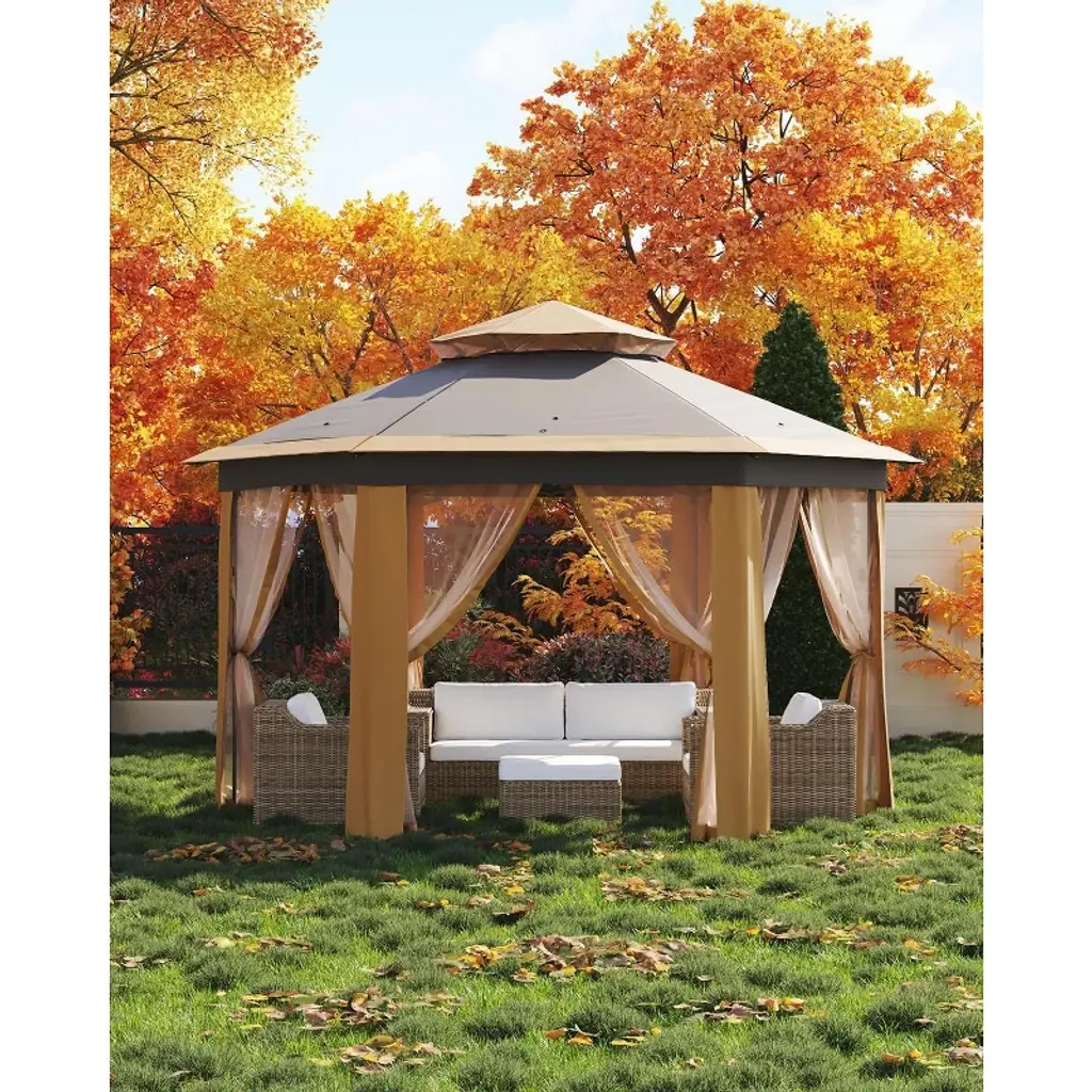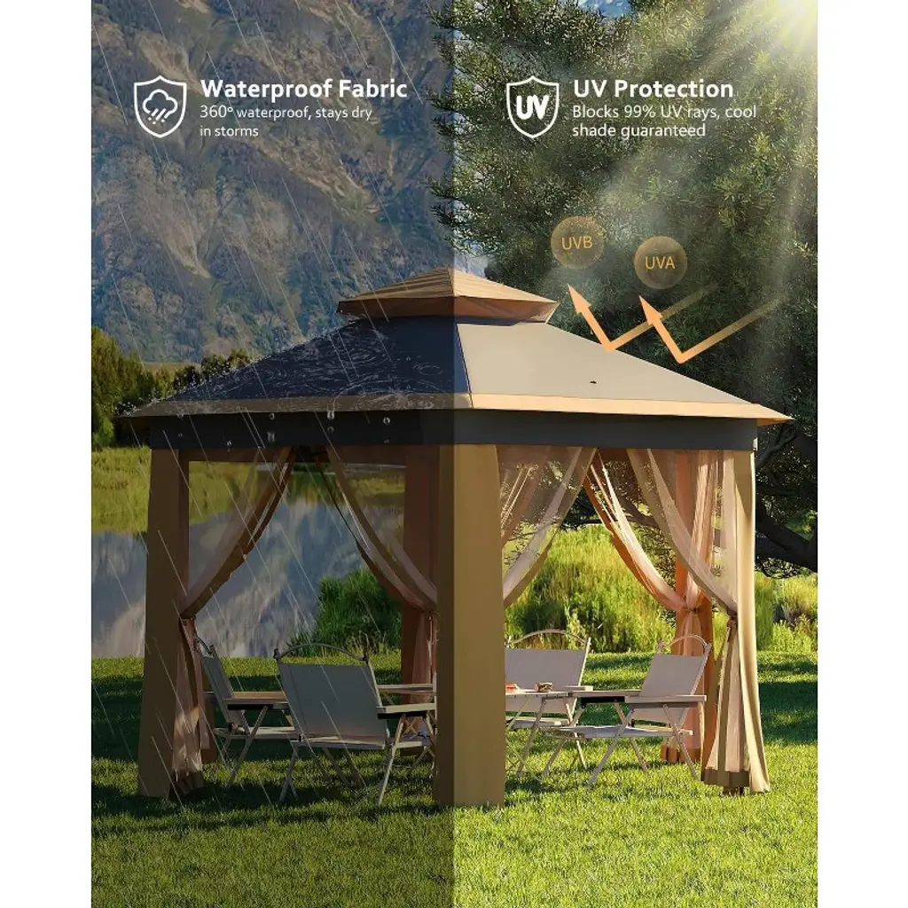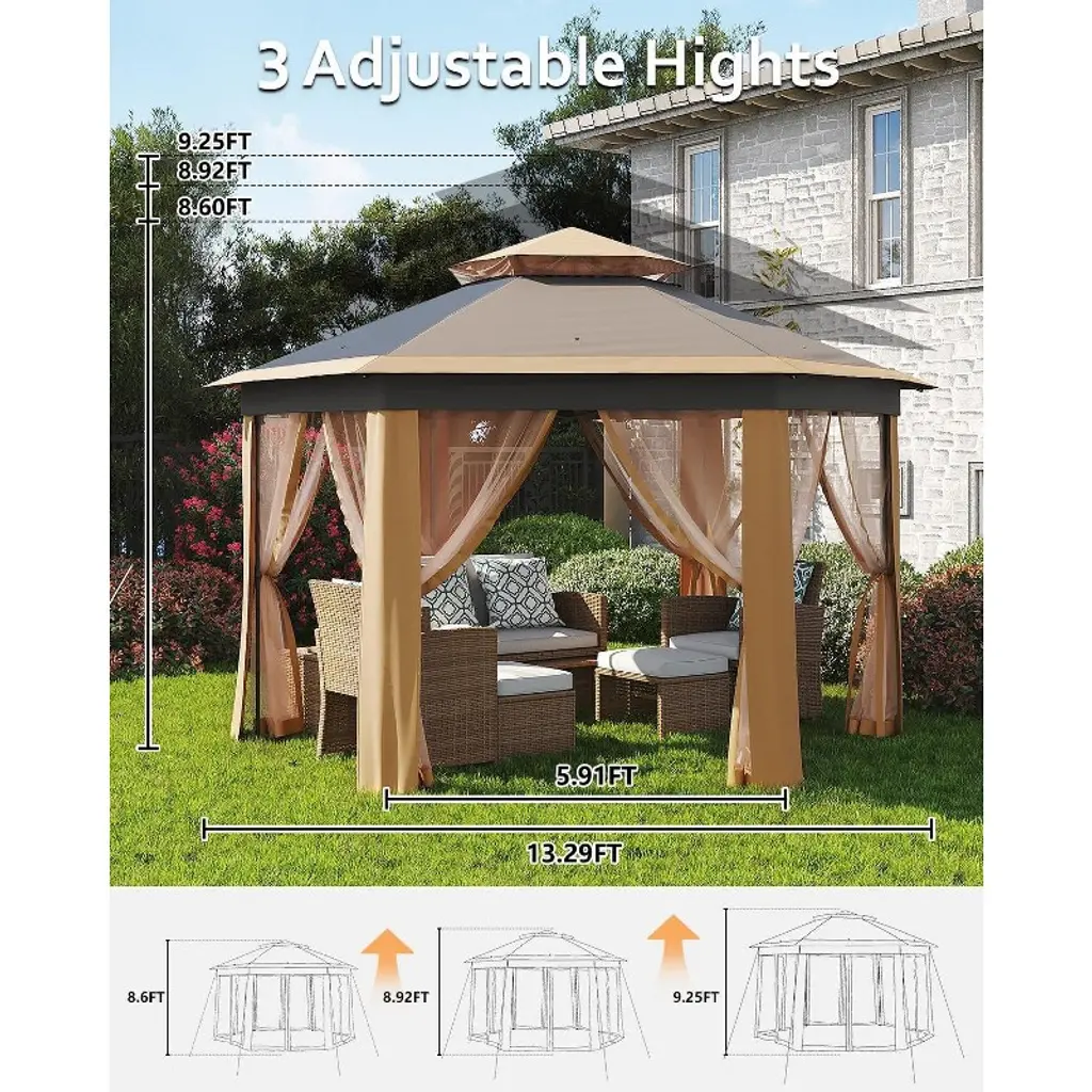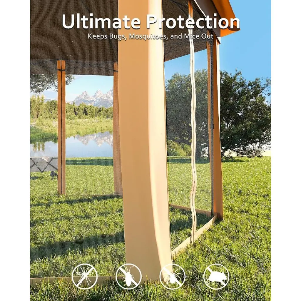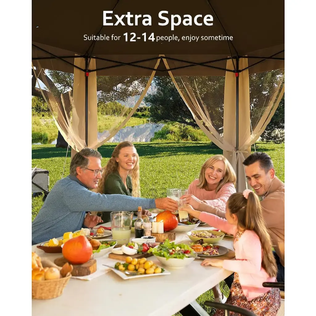 Garvee Pop Up Gazebo,13x13ft Outside Canopy Tent With 6 Pcs Mosquito Netting, Double-layer Pop Up Canopy For Backyard & Patio Furniture, Beige