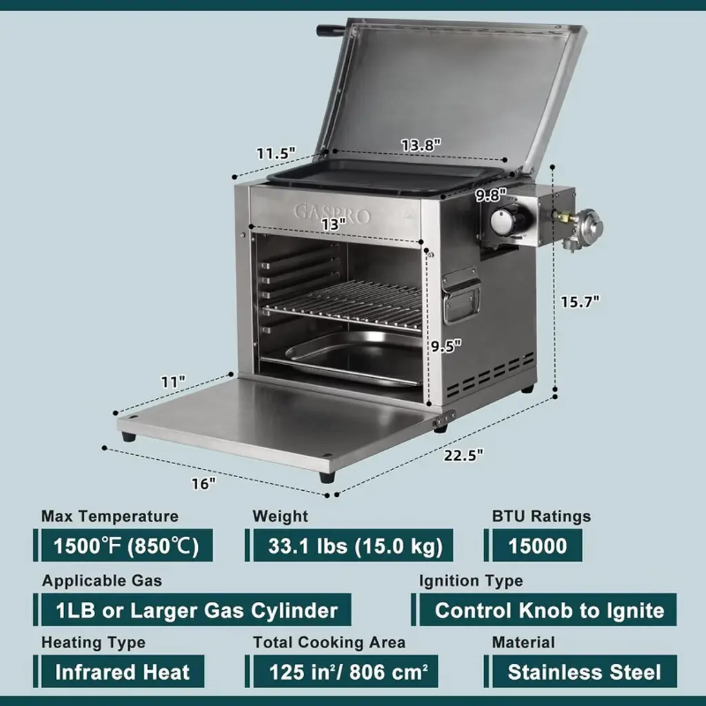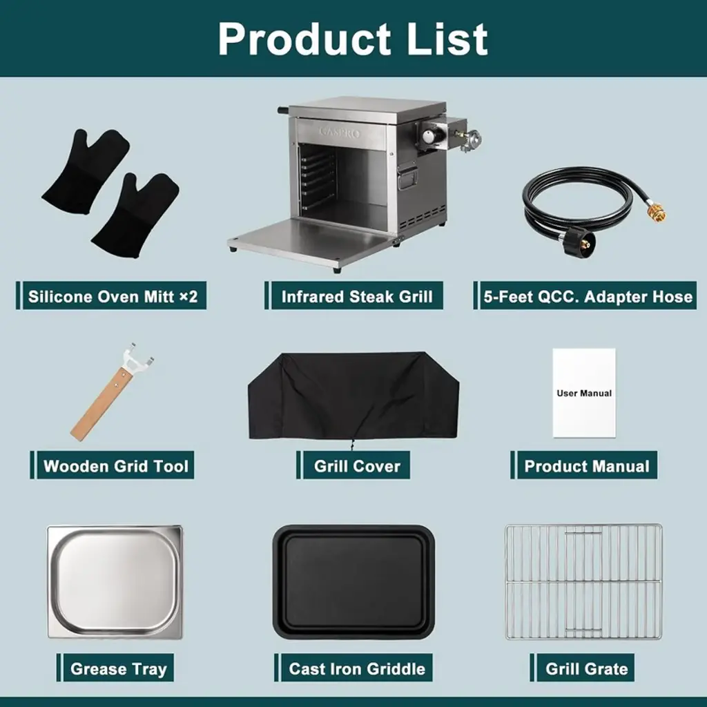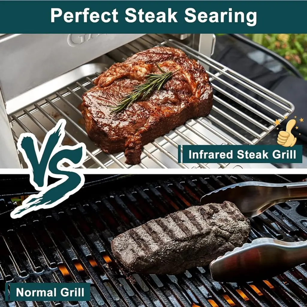 Gaspro Multi-tasking Propane Infrared Steak Grill, Xl Steakhouse & Cast-iron Griddle 2-in-1 Outdoor Cooking Master | 125 In2 Extra Large Cooking Area