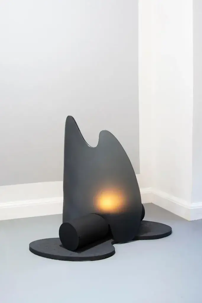 Gathering heat by Christian and Jade Gathering heat Year: 2019 Material: Smoked glass, steel, Lavastone, bioethanol system Size: H 62, L 100, W 70 cm Smoke cloud chandelier is an oil lamp that floats mid space, cap- Turing the trace of fire from a time where it was a source of light in the home. Made out of aluminum sheets the smoke cloud chandelier have been hammer formed to provide a vessel for its lamp oil. Through the reflection of the flame, the aluminum comes to life, radiating its light back into the space. The smoke cloud chandelier is an ode to the fire and the lively conversations that grew around it.
