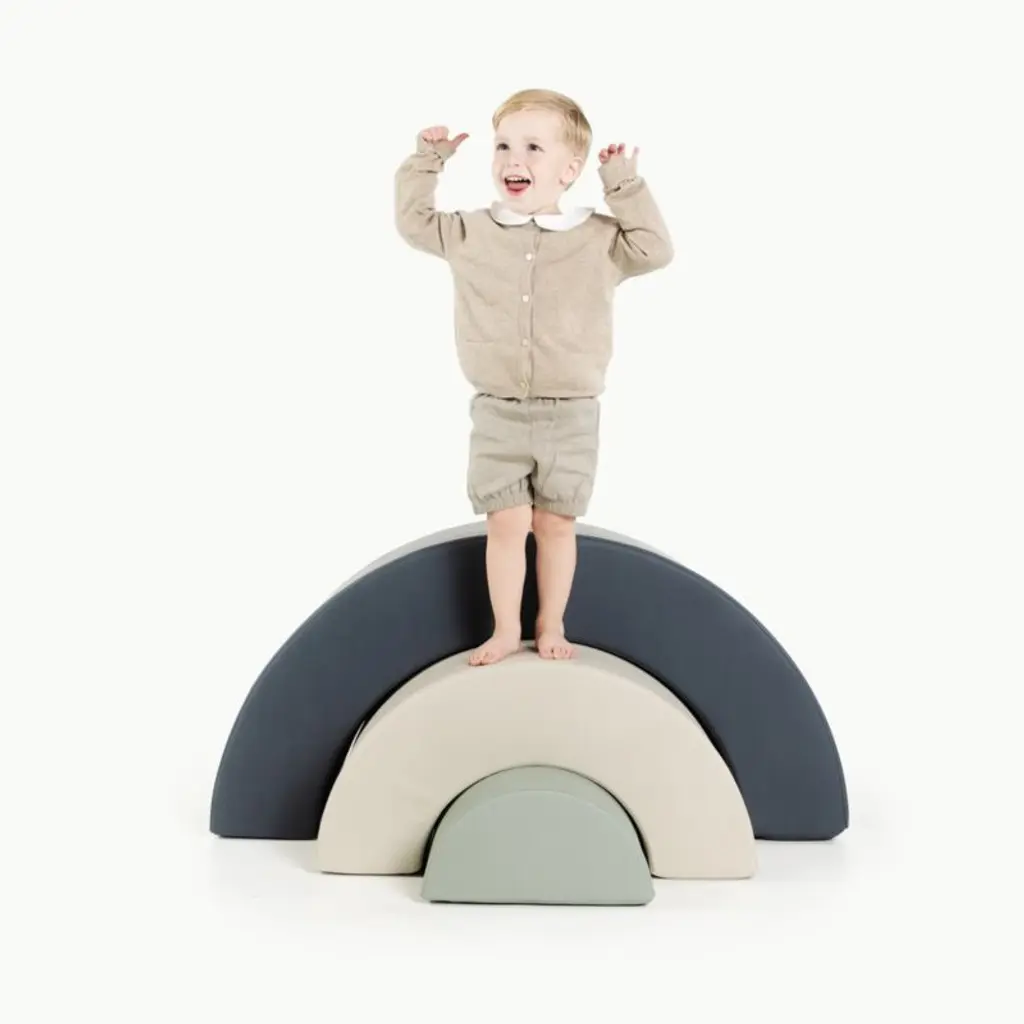 Seesaw, swing, stomp and slidethis soft, supportive playset by Gathre creates a safe space for letting your little one's imagination run wild. Each comfy, arced piece has a frameless foam design that holds its shape through plenty of play, plus a water-resistant vegan leather cover that's a breeze to wipe clean. Kids can arrange any combo of these arcs to create tunnels, obstacle courses and so much more in all their favorite play spaces.