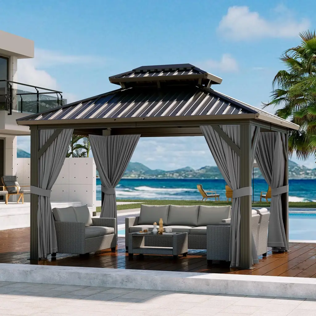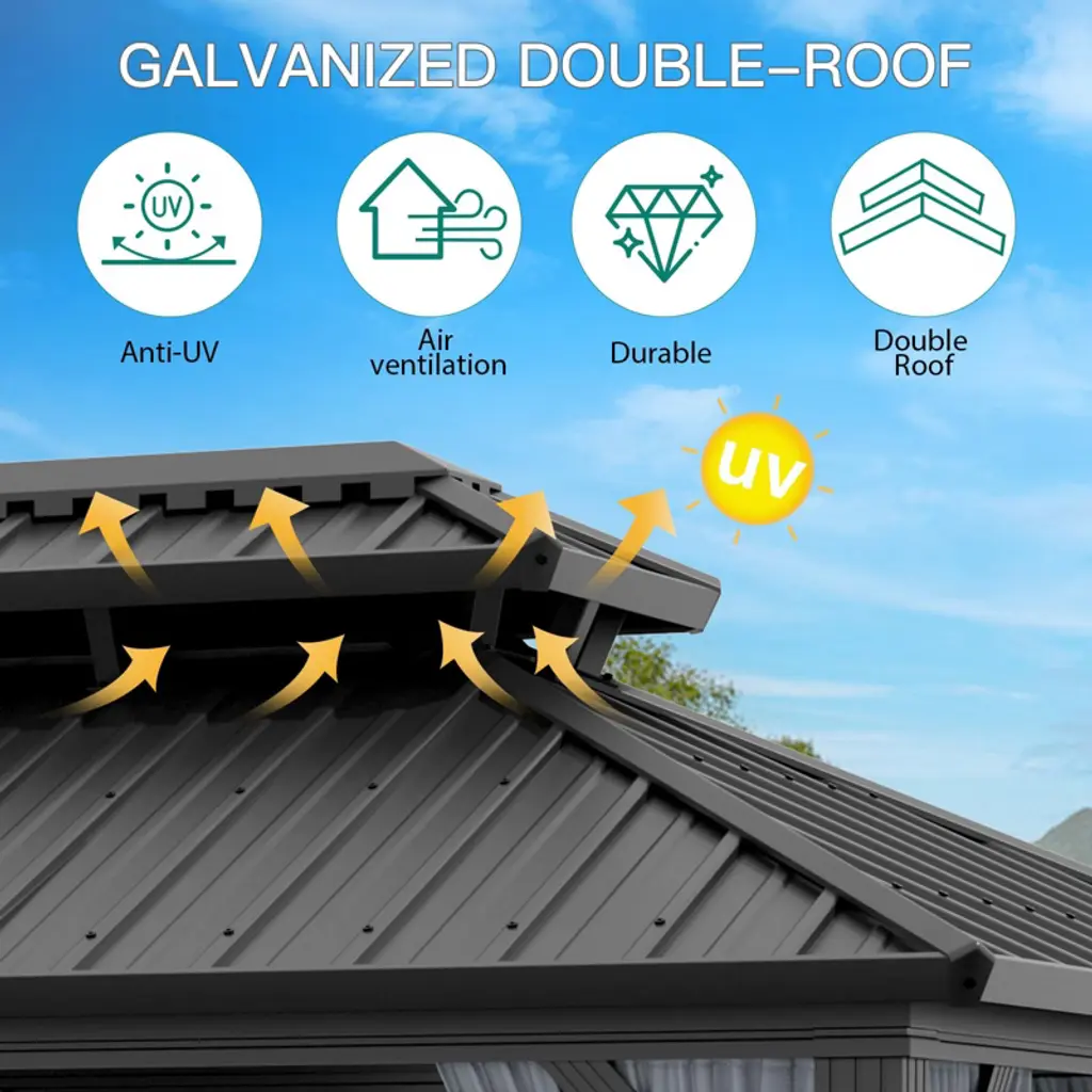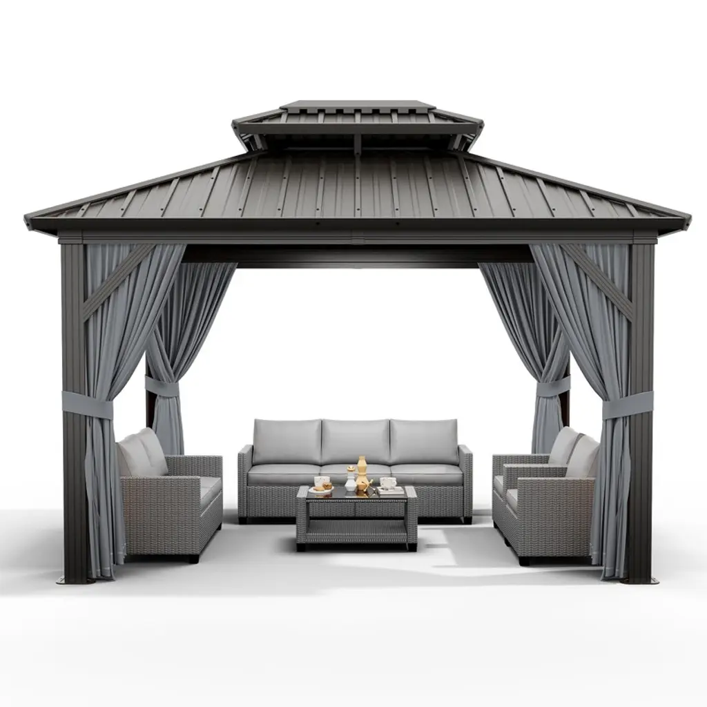 Gazebo 10x12 Ft, Garden Tent, Frame Of Aluminum, Tin Roof Pavilion