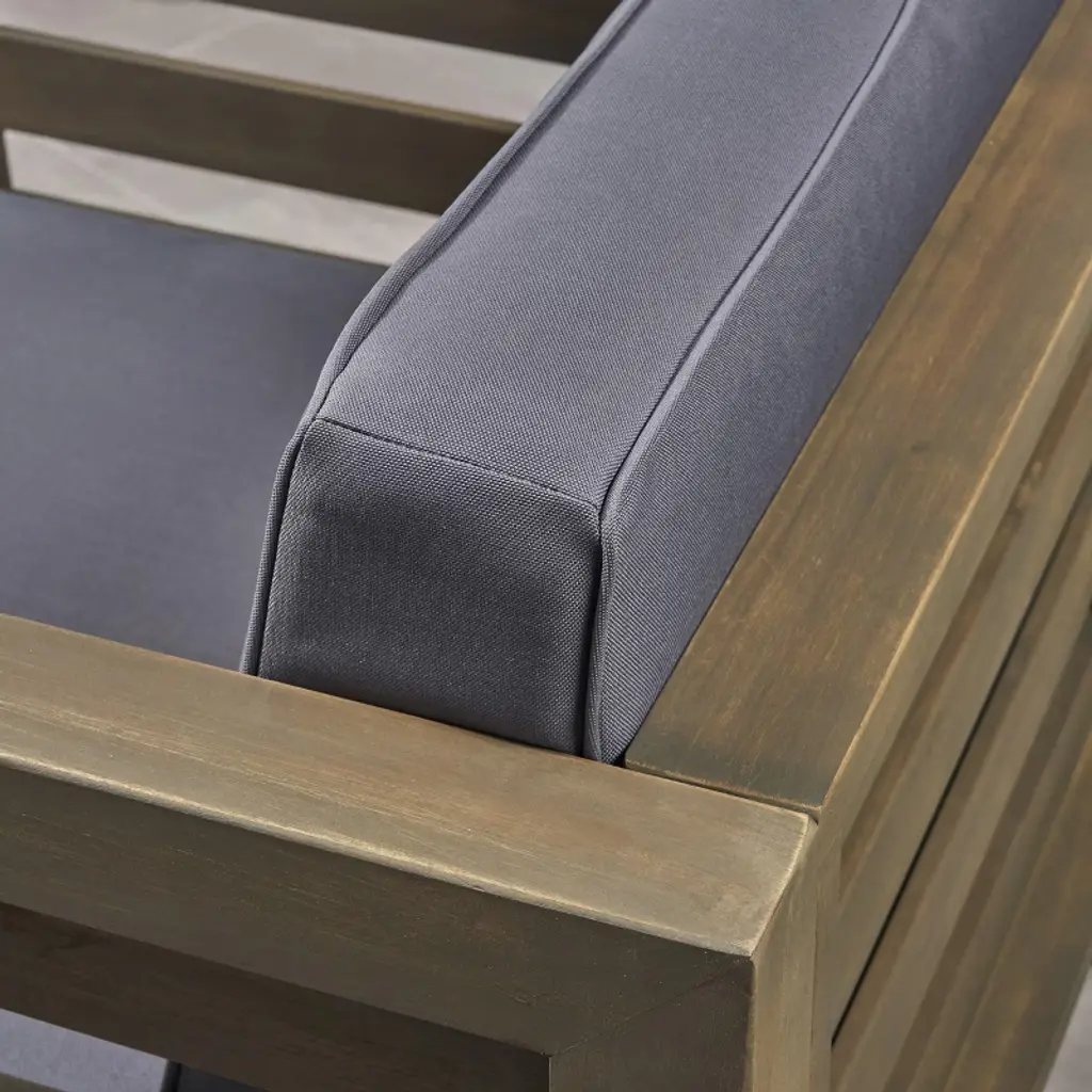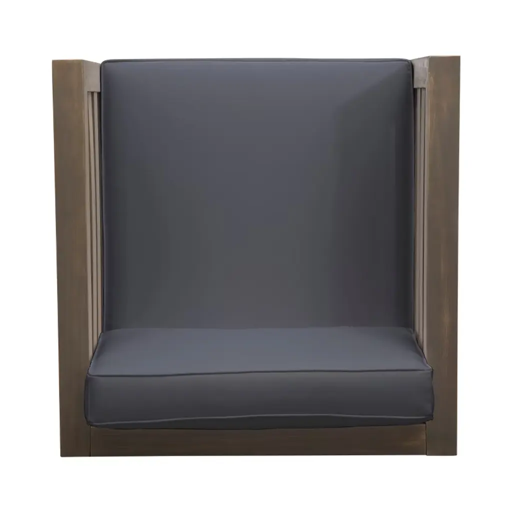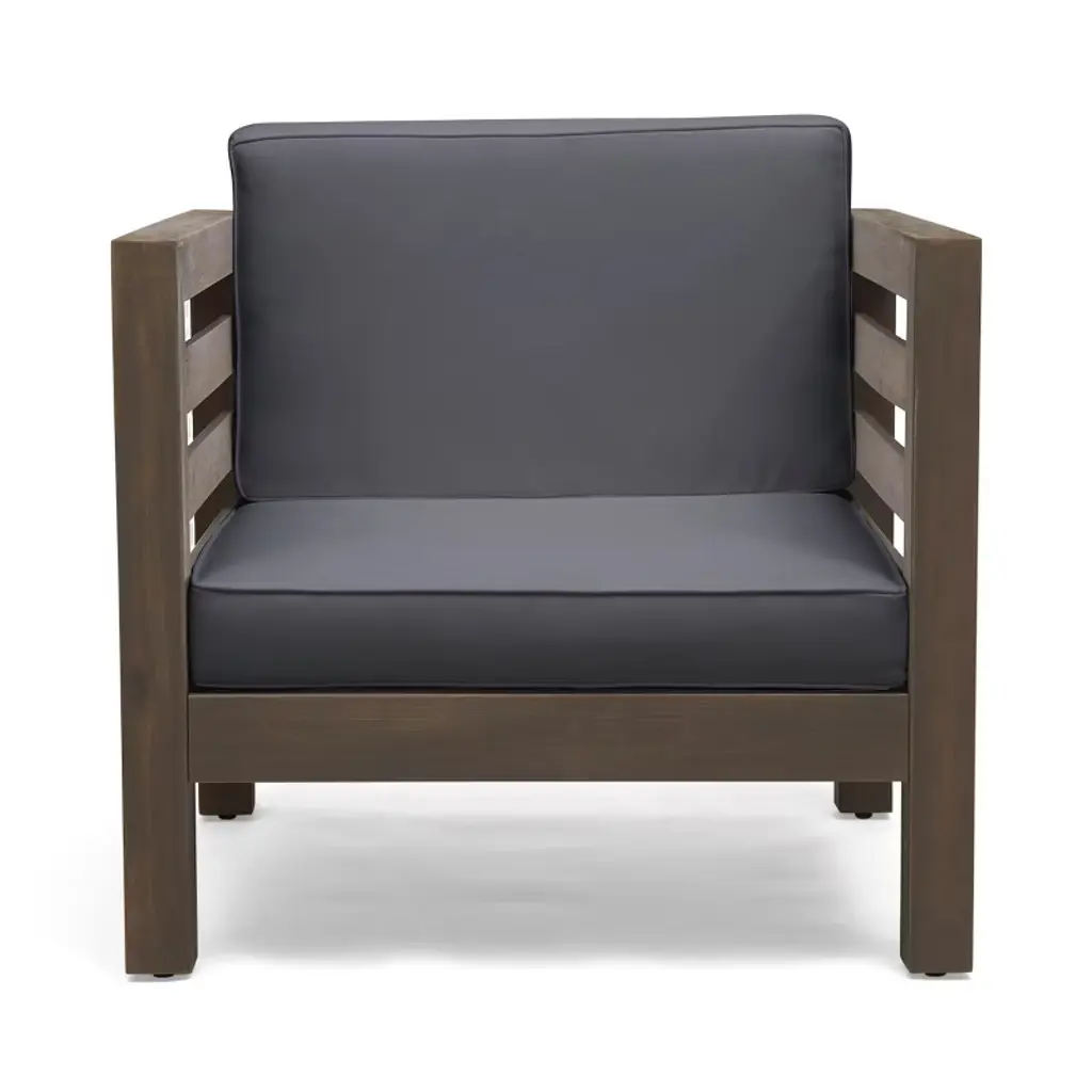 Gdfstudio Cascada Outdoor Acacia Wood Club Chair With Water-resistant Cushion, Dark Gray/gray