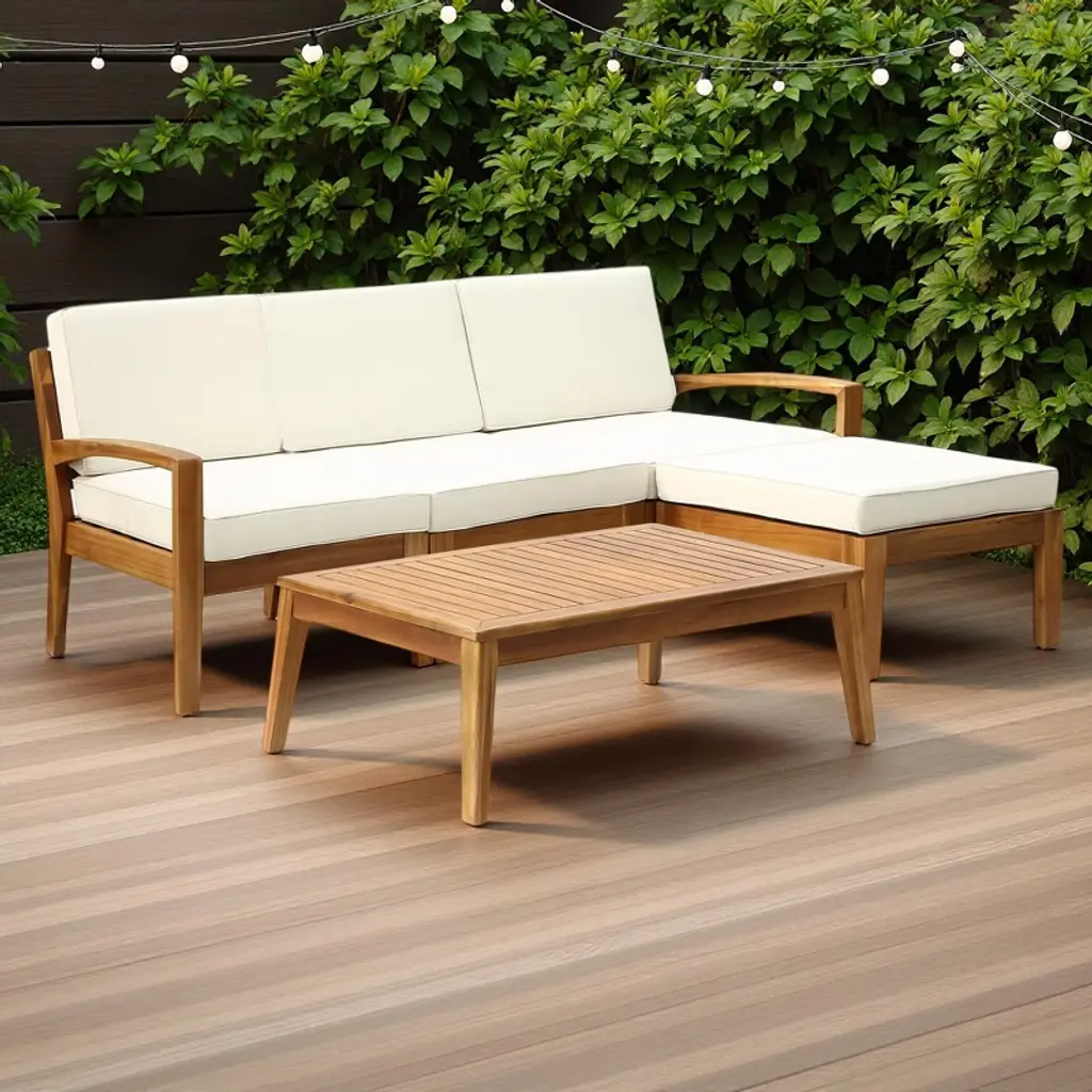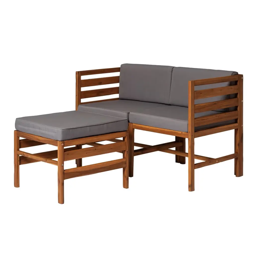 Enhance your outdoor living with this 3-piece acacia wood patio seating set, including two chairs and one ottoman. Made from durable, weather-resistant wood, it features comfortable cushions with removable covers and secure fasteners. Its modular design offers flexible arrangements, perfect for patios, balconies, or gardens. Cushion Material: Fabric Fabric Composition: 100% Polyester Multiple Frame Finish Options Multiple Cushion Color Options Some Assembly Required Right-Side Armchair Dimensions: 24.00 inches deep x 24.00 inches wide x 30.25 inches high Left-Side Armchair Dimensions: 24.00 inches deep x 24.00 inches wide x 30.25 inches high Ottoman Dimensions: 23.25 inches deep x 23.25 inches wide x 19.00 inches high