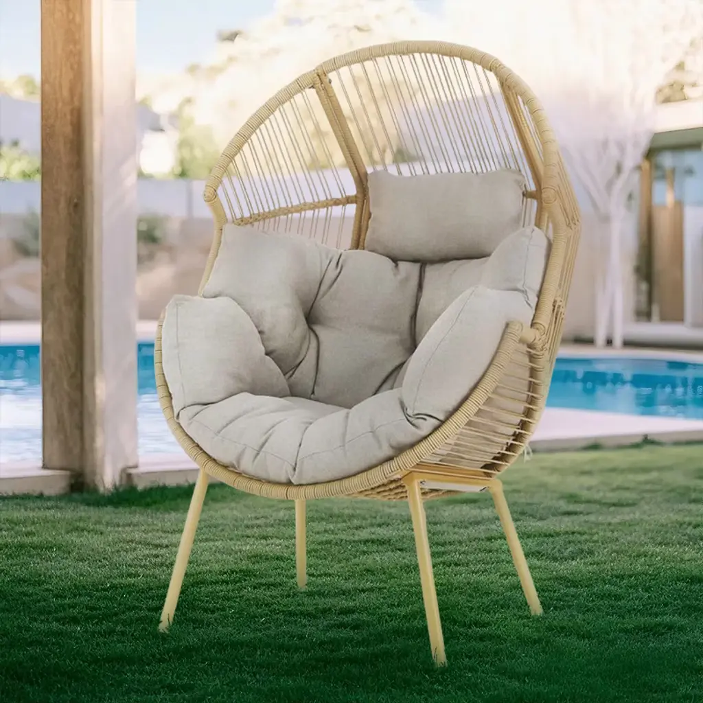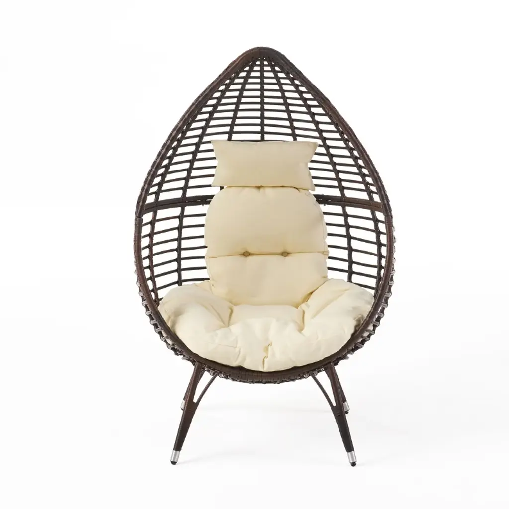 Relax in style with this Teardrop Patio Lounge Chair. Crafted with a sturdy metal frame and durable resin wicker, it features an inviting teardrop silhouette and a soft, water-resistant beige cushion for hours of comfort. The neutral multi-brown finish complements any outdoor decor, while the abstract mesh design adds a modern touch. Ideal for patios, decks, or garden spaces, this chair creates a cozy retreat for reading, lounging, or entertaining. Assembly is required, and all tools are included for easy setup. Material:Rattan Frame Material: Iron Cushion Material: Water Resistant Fabric Finish: Brown Bronze Cushion Color: Beige Dimensions: 32.75 inches deep x 39.00 inches wide x 59.75 inches high Seat Dimensions: 22.75 inches deep x 20.75 inches wide x 13.00 inches high Weight Capacity: 400 lbs Assembly Required