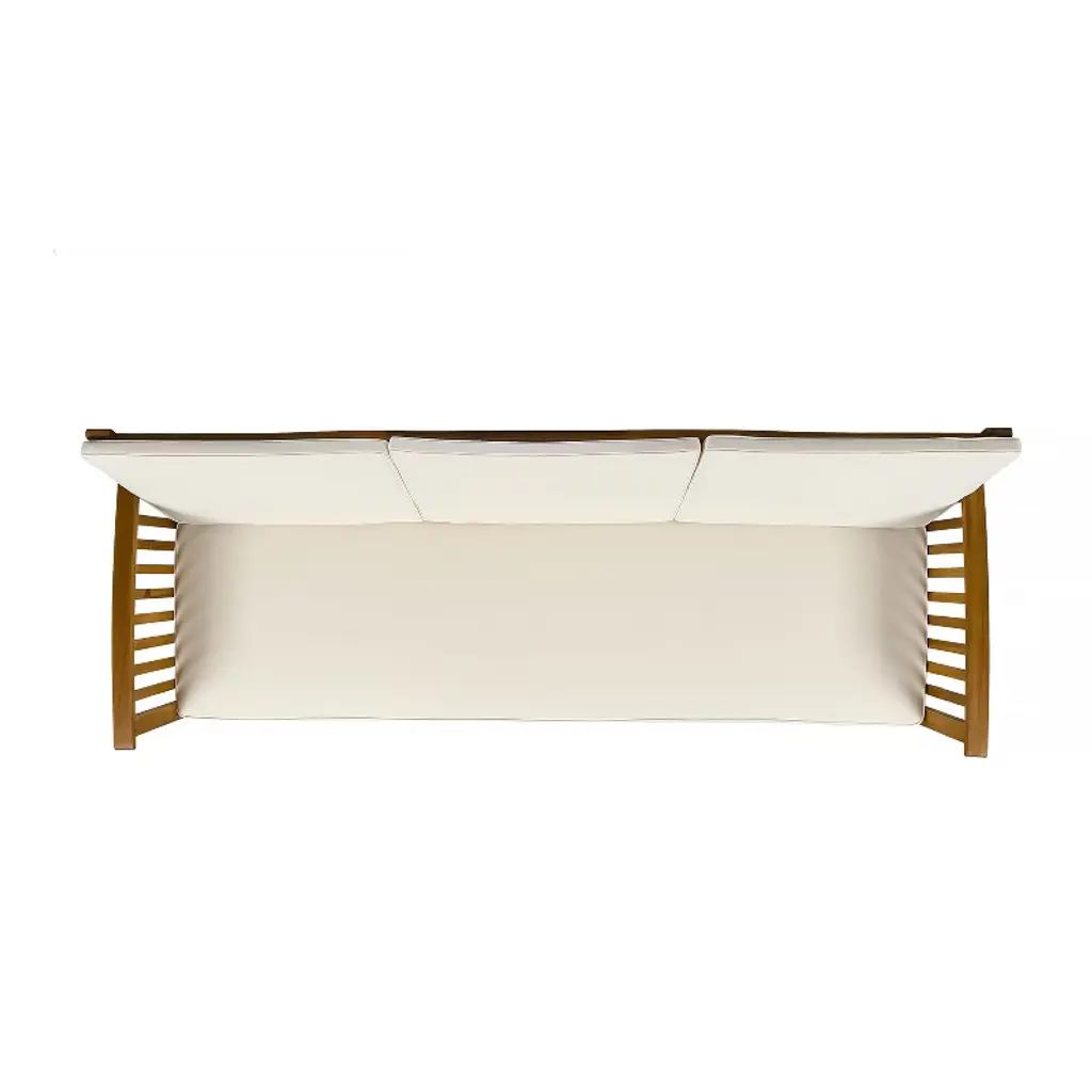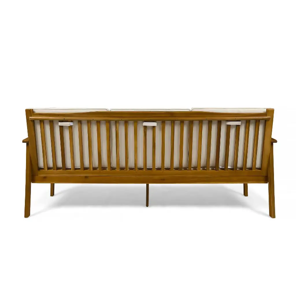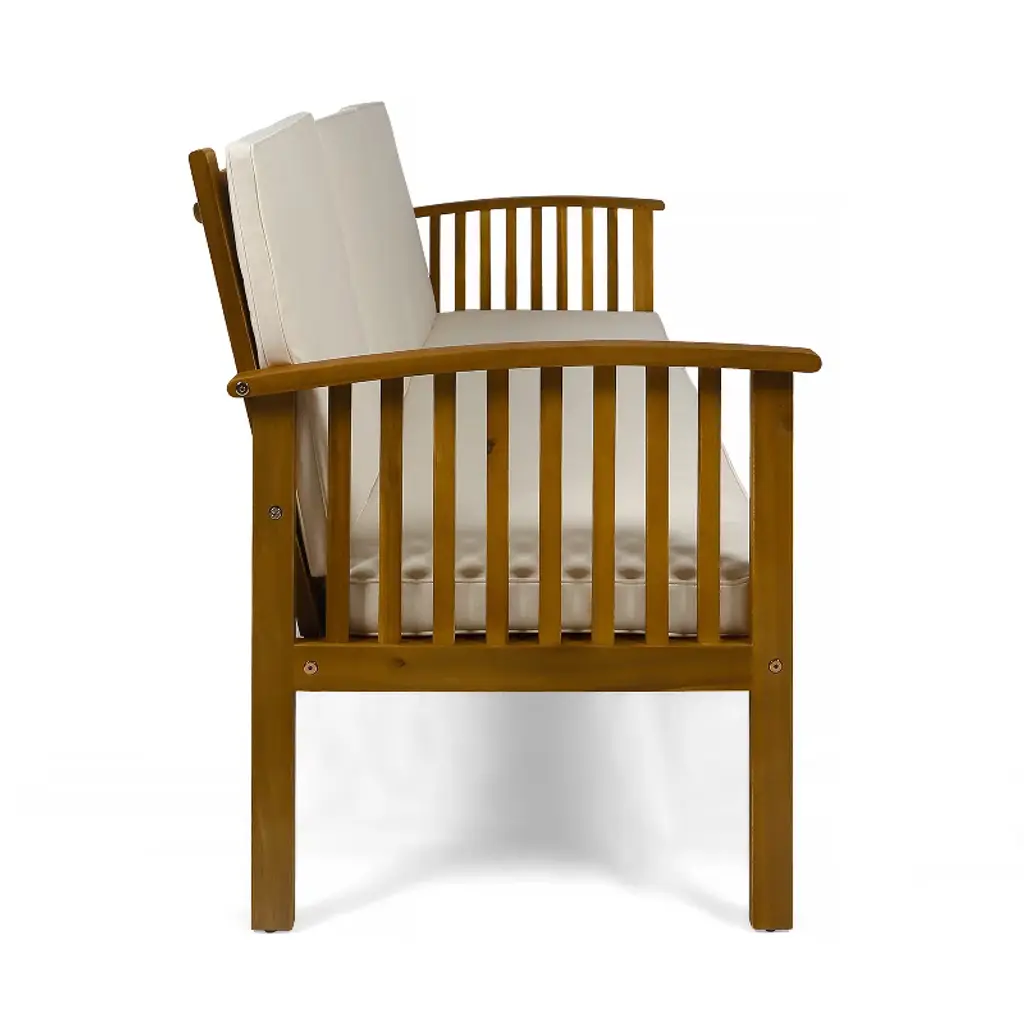 Gdfstudio Navan Outdoor Acacia Wood 3 Seater Sofa And Coffee Table Set With Cushions, Cream/teak