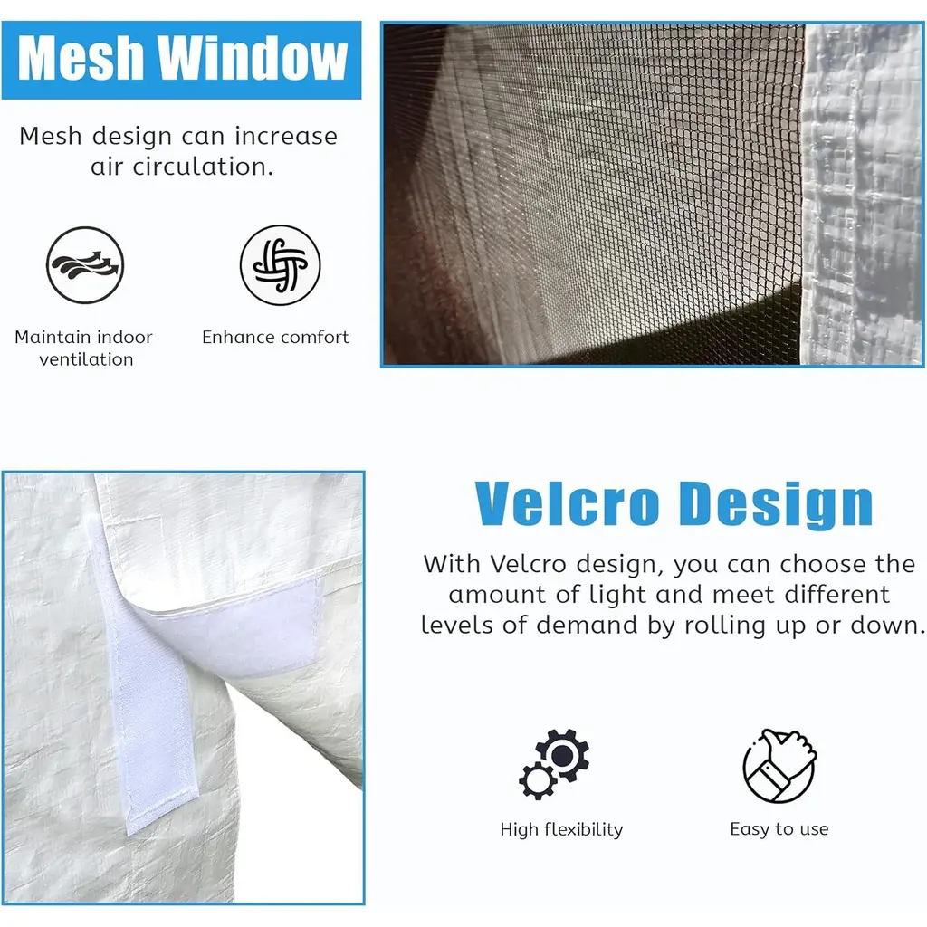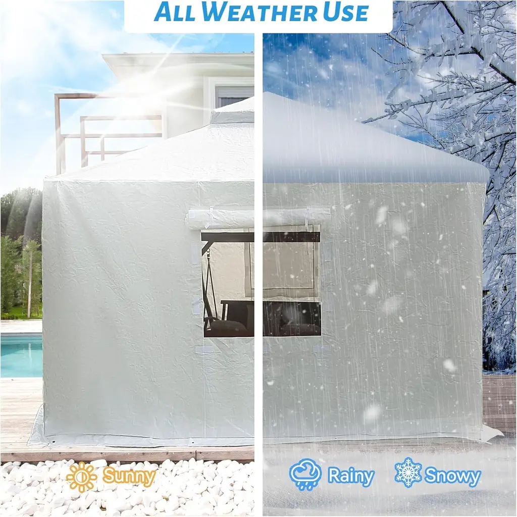 Reliable Shelter for Harsh Weather Seasons: Built for hardtop gazebos, this all-season enclosure transforms your outdoor structure into a durable, weather-resistant retreat. It protects your space against wind, snow, and rain, extending your outdoor usability throughout winter. Durable and Weatherproof PE Construction: Crafted from high-grade PE material, the cover offers long-term strength and water resistance. This quality construction ensures the enclosure maintains its form and effectiveness through varying seasonal conditions. Multipurpose Winter Storage Solution: Turn your gazebo into a practical winter shelter. Whether you're storing furniture, sports gear, or outdoor tools, this cover keeps your belongings dry and well-organized in a sealed, moisture-resistant space. Secure Fit with Windproof Enhancements: An 8.7-inch extended skirt and built-in pre-drilled holes ensure the cover can be firmly anchored to resist strong winds. These smart features provide consistent protection and stability through stormy weather. User-Friendly Design for Airflow and Access: Featuring mesh windows for ventilation and a zippered entry for quick access, this enclosure is designed for comfort and convenience. It balances privacy with breathability, making it an ideal seasonal upgrade.