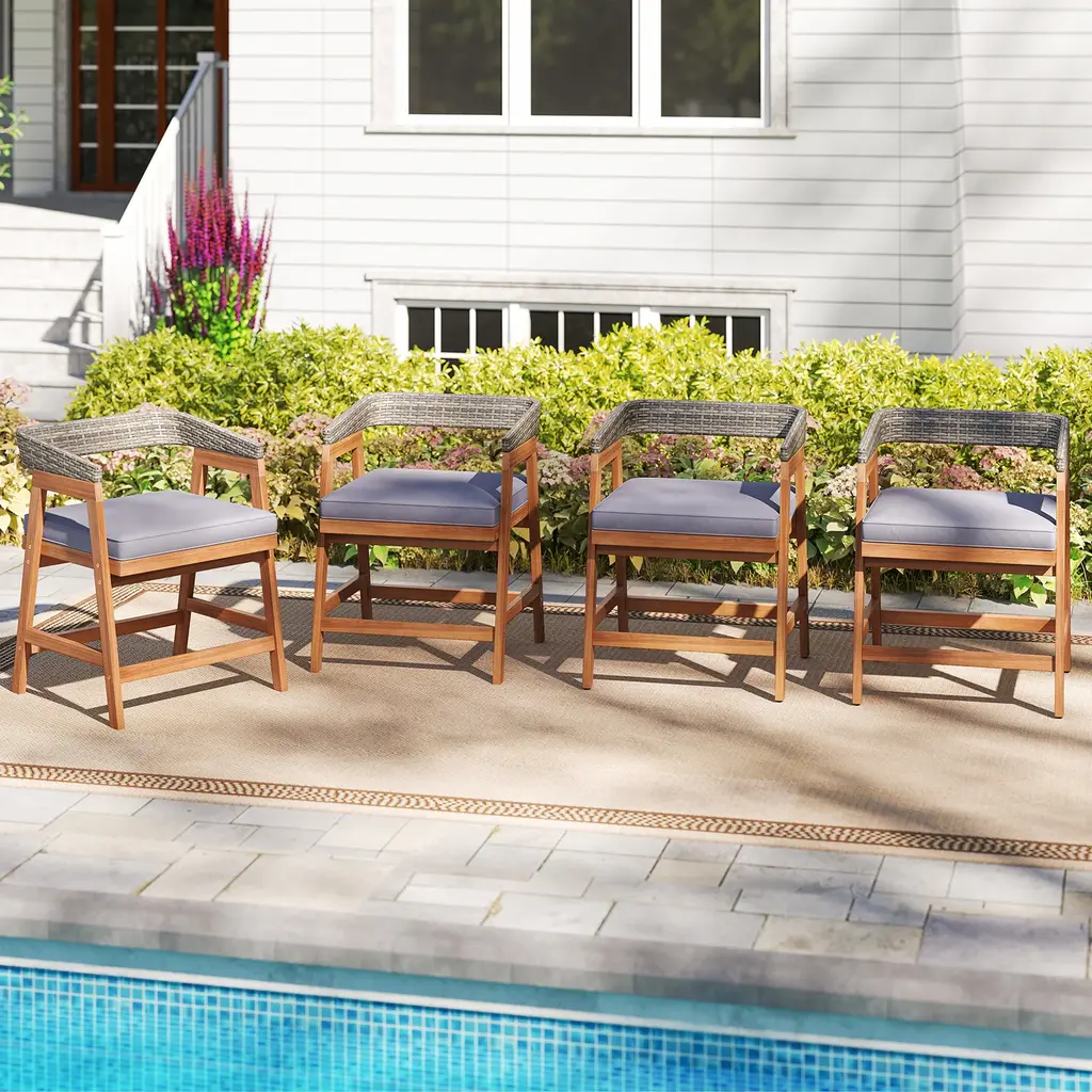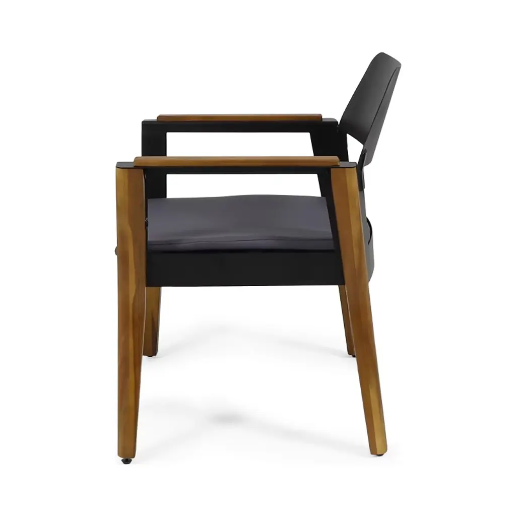 Bring stylish charm to your backyard or patio and elevate your outdoor relaxation. Featuring a beautiful acacia wood frame paired with striking metal details, our outdoor club chairs introduce a sleek industrial vibe to your space. Designed for durability, each chair is equipped with plush seat cushions that ensure lasting comfort. Whether you're enjoying a quiet read or chatting with friends, this set of club chairs provides the perfect blend of support and style for any outdoor setting. Frame Material: Acacia Wood Accent Material: Iron Cushion Material: Water Resistant Fabric Fabric Composition: 100% Polyester Frame Finish: Teak Accent Material: Black Cushion Color: Dark Gray Assembly Required Dimensions: 21.75 inches deep x 27.50 inches wide x 30.25 inches high Seat Dimensions: 20.75 inches deep x 21.25 inches wide x 15.00 inches high Arm Height: 24.00 inches high