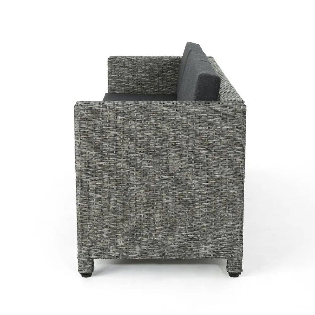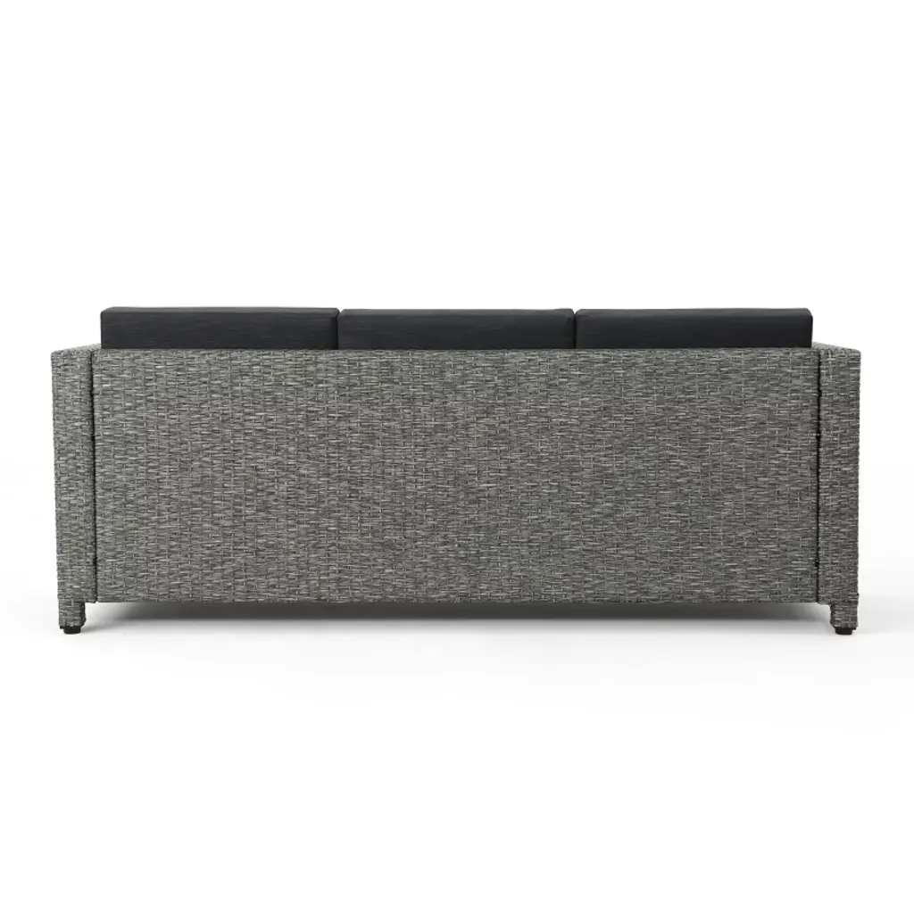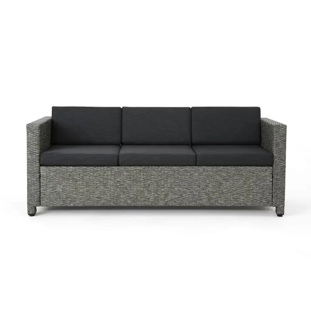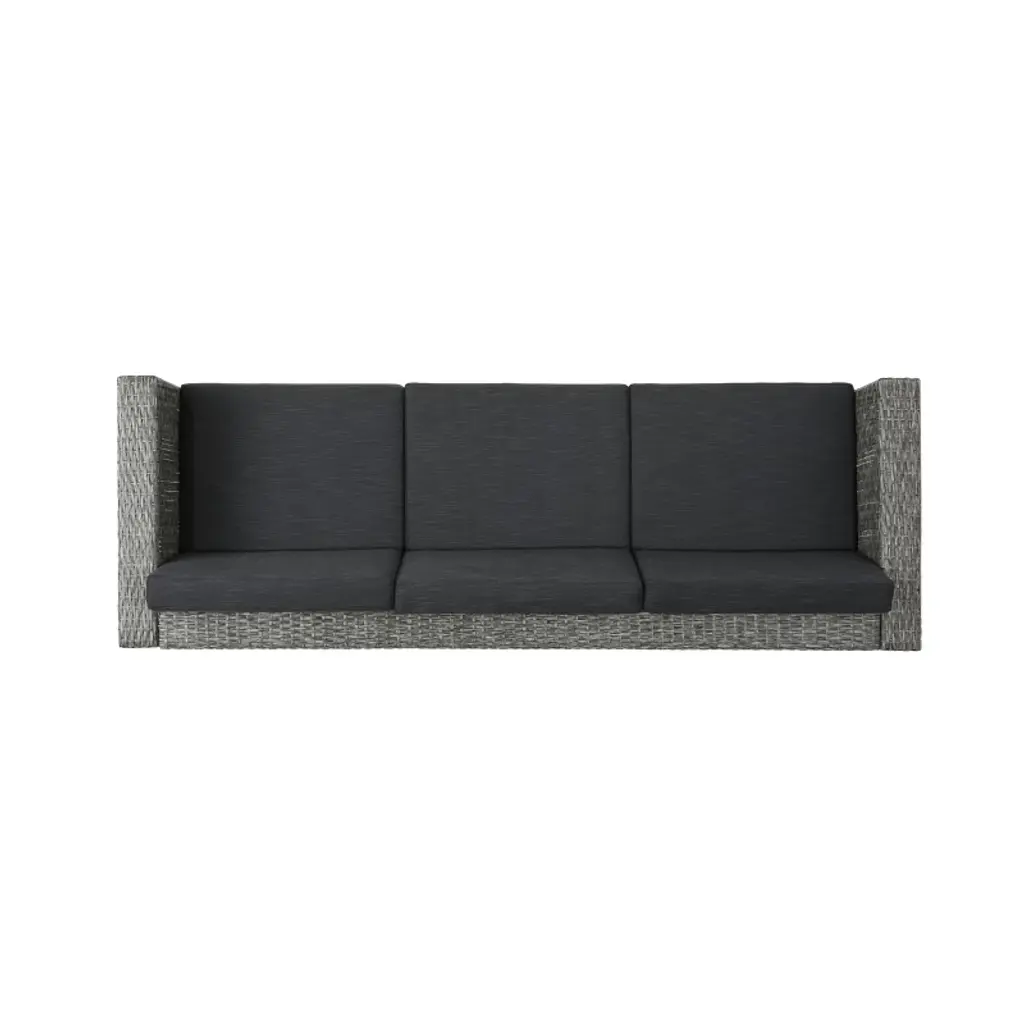 Gdfstudio Venice Outdoor 76.75" Wicker 3-seater Sofa With Water-resistant Cushions, Dark Gray/mixed Black
