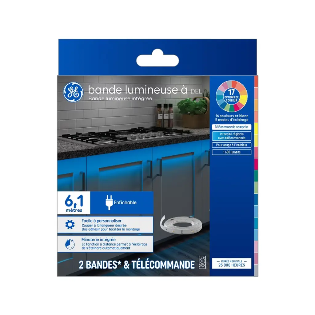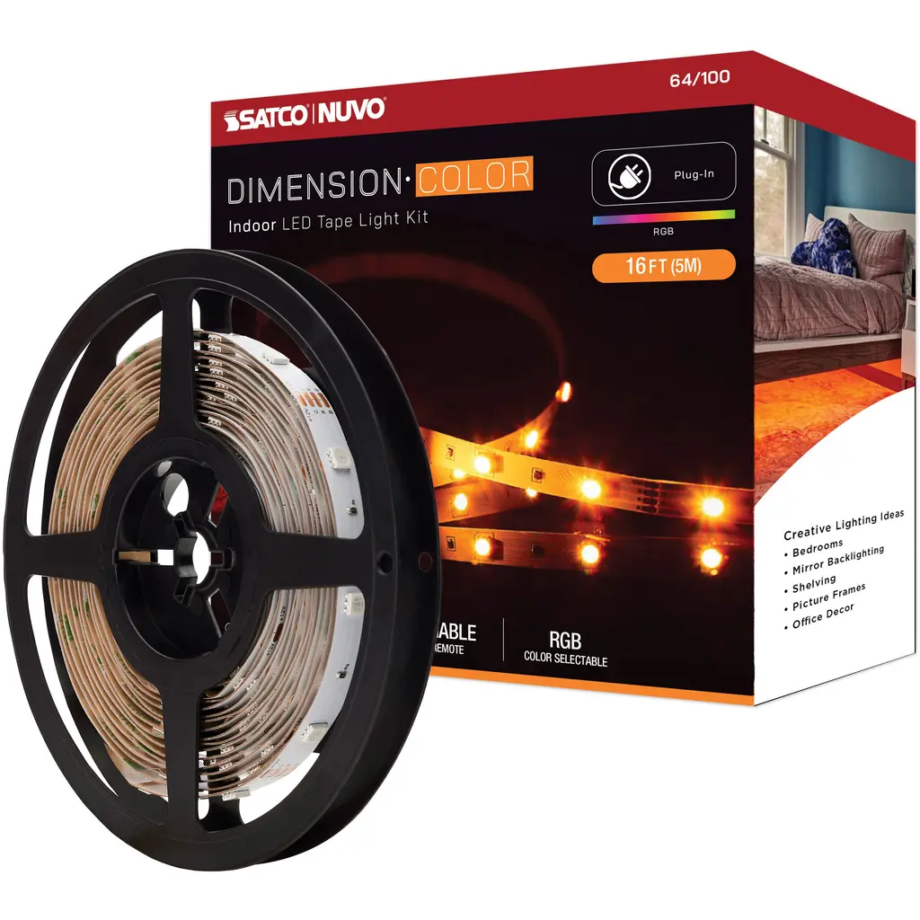 Easily enhance the ambiance of your space with our indoor color-changing LED tape light. Install anywhere with adhesive backed mounting and provided clips. Cut to desired length for a precise fit or use provided connecting cord to bend around corners. Use the included remote or integrated control box to change light color, light mode, adjust brightness, and power on or off. One remote can control multiple tape light sets.