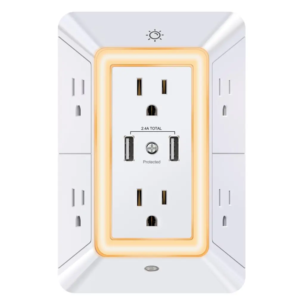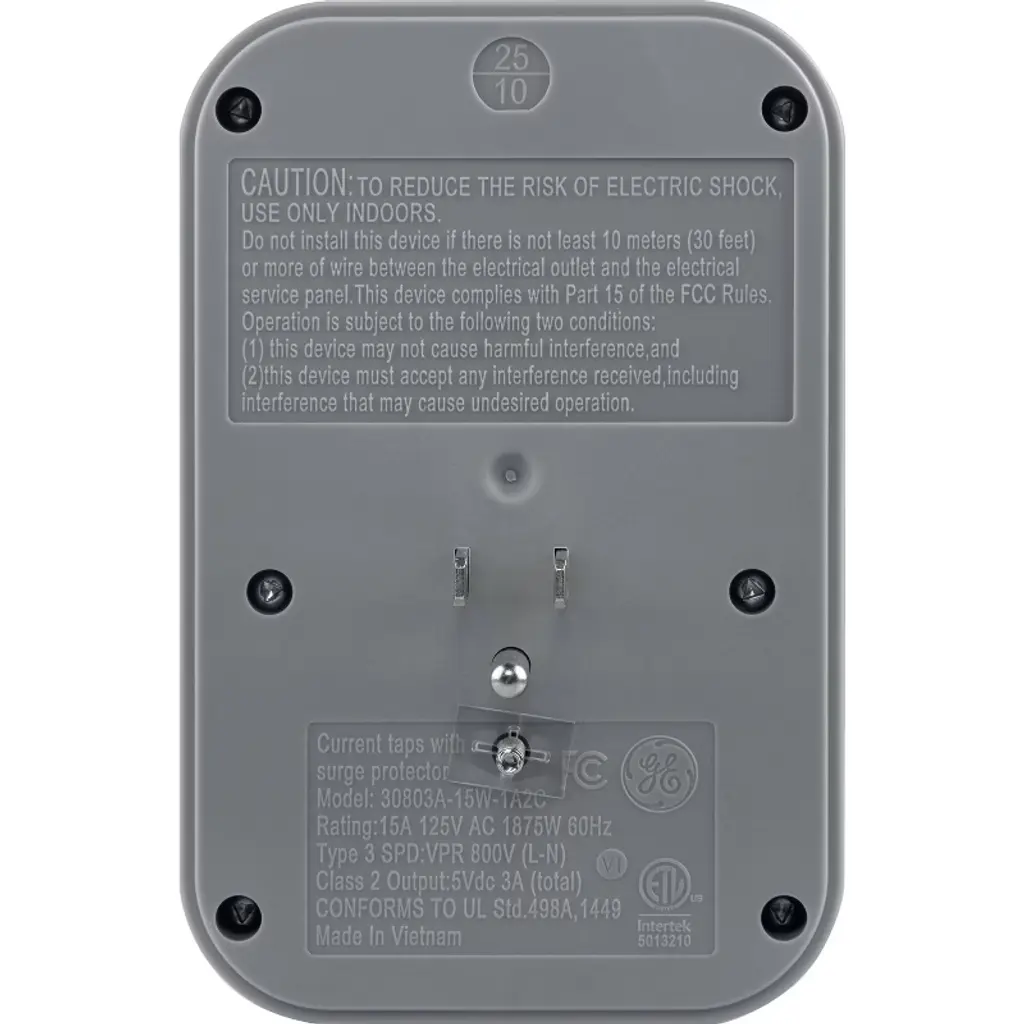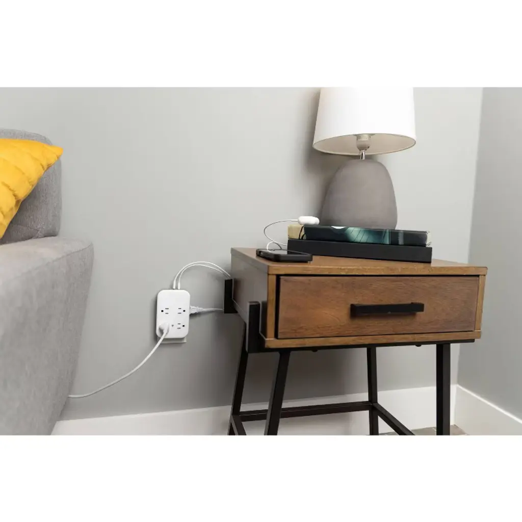 Versatility is powerful with the GE All-in-One USB-Charing Surge Tap. Featuring four grounded and four polarized adapter-spaced outlets as well as two USB-C ports and one USB-A port (15W/3A shared), this thoughtfully designed surge protector wall tap creates an all-in-one central powering station for your electronics, household appliances, smartphones, tablets and more. The sleek white and gray finish along with adapter-spaced and side-access outlets, combine style and convenience, letting you use multiple bulky plugs and adapters while keeping the other outlets unobstructed and power cords close to the wall. Simply plug this outlet extender into a standard grounding duplex wall receptacle and you’re ready to enjoy seamless power and protection. Designed to safeguard your electronics from voltage spikes and circuit overloads, this surge protector has an integrated circuit breaker with reset switch and a surge protection rating of 1,140 Joules. For extra peace of mind, this wall tap is ETL safety certified and backed by a $100,000 connected equipment policy and limited-lifetime replacement plan, ensuring your devices are protected by the highest standards of safety. Plug into the versatility and reliability of the GE All-in-One USB-Charging Surge Protector.