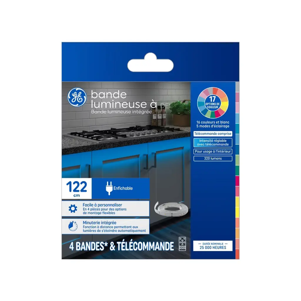 Easily enhance the ambiance of your space with our indoor color-changing LED tape light. Install anywhere with adhesive backed mounting and provided clips. Cut to desired length for a precise fit or use provided connecting cord to bend around corners. Use the included remote or integrated control box to change light color, light mode, adjust brightness, and power on or off. One remote can control multiple tape light sets.