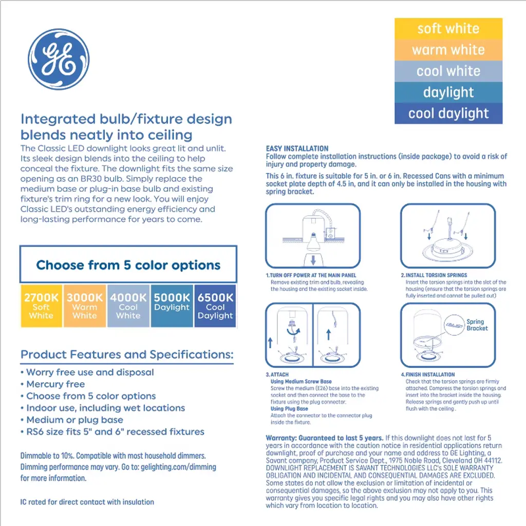 Ge Household Lighting 6'' Classic Led 5Cct Recessed Wafer Downlight