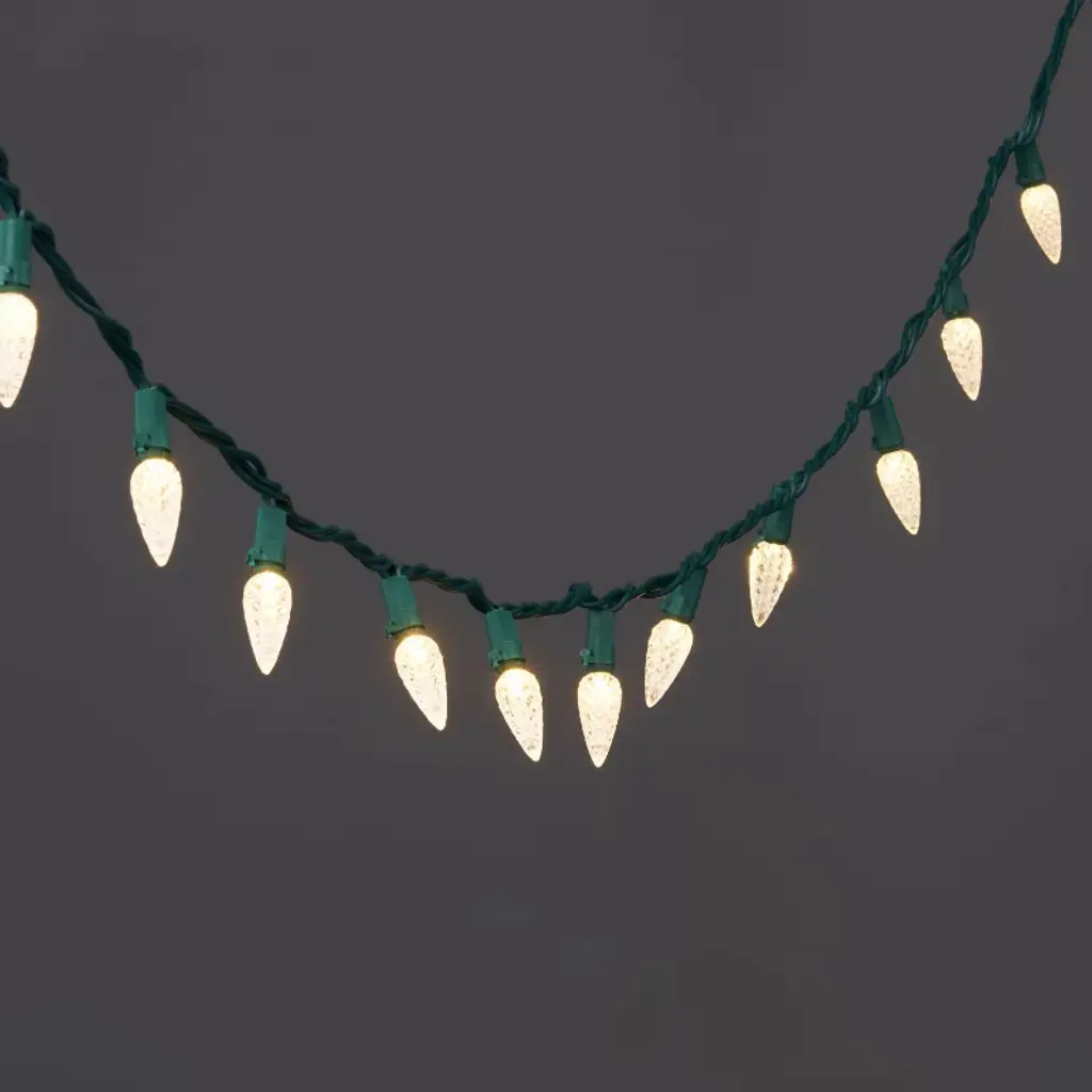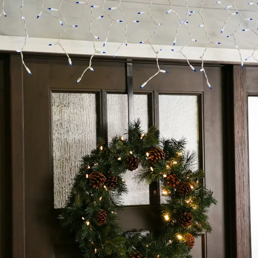 GE String-A-Long incandescent 5-mm miniature 300-count blue icicle light set. 3-Inch lead wire, 2.75-inch lamp spacing, 3-inch strand spacing, 54 icicle strands, 3-inch end connector, 13.2-feet lighted length, and white cord set with fused plug. Features: GE 5-mm incandescent Christmas icicle lights. 300-Count, blue incandescent lights. 13.2-Feet lighted length, white cord with fused plug. Can connect up to 3 sets. Replacement bulbs and fuses included for added convenience. For indoor or outdoor use.