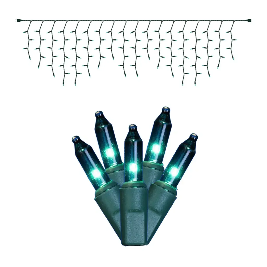 Decorate your roofline, shed, and home with the GE String-A-Long 300 Icicle-Style Lights Clear Lights 13.2-feet Length. The beautiful lights are clear with the white wire. Features: GE 5-mm incandescent Christmas icicle lights. 300-Count, clear incandescent lights. 13.2-Feet lighted length, white cord with fused plug. Can connect up to 3 sets. Replacement bulbs and fuses included for added convenience. For indoor or outdoor use.