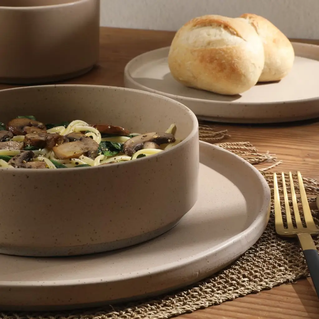 A table setting sets the mood of the meal and the occasion so incorporate pieces with style and character. The Tatum 16-piece Porcelain Dinnerware Set from Gibson Elite lays out elegant pieces of dinnerware that bring beauty and durability to the table. Porcelain plates and bowls feature artisanal flecks from the reactive glaze to add depth and visual texture, ensuring that no two pieces are alike. Modern straight shapes allow these pieces to stack to save cabinet space and encourage home cooks to get creative with their meal presentations. As a collection of stunning home staples, this dinnerware set is a tasteful gift idea for all occasions. Loved for its practical use and decorative function, dinnerware sets also express your impeccable taste and well wishes to family, friends, early nesters, and newlyweds. Dishwasher and microwave safe. Quintessentially sophisticated and thoughtfully versatile, Gibson Elite offers a tasteful blend of form and function brought to a myriad of dinnerware, serving ware, and tabletop accessories. Quality in material selection and stylish aesthetics in designs and glazing techniques provide endless possibilities for creative tablescapes and dining occasions.A table setting sets the mood of the meal and the occasion so incorporate pieces with style and character. The Tatum 16-piece Porcelain Dinnerware Set from Gibson Elite lays out elegant pieces of dinnerware that bring beauty and durability to the table. Porcelain plates and bowls feature artisanal flecks from the reactive glaze to add depth and visual texture, ensuring that no two pieces are alike. Modern straight shapes allow these pieces to stack to save cabinet space and encourage home cooks to get creative with their meal presentations. As a collection of stunning home staples, this dinnerware set is a tasteful gift idea for all occasions. Loved for its practical use and decorative function, dinnerware sets also express your impeccable taste and well wishes to family, friends, early nesters, and newlyweds. Dishwasher and microwave safe.Quintessentially sophisticated and thoughtfully versatile, Gibson Elite offers a tasteful blend of form and function brought to a myriad of dinnerware, serving ware, and tabletop accessories. Quality in material selection and stylish aesthetics in designs and glazing techniques provide endless possibilities for creative tablescapes and dining occasions. A COMPLETE SET INCLUDES: four 10.75-inch dinner plates, four 8.5-inch dessert plates, four 7-inch dinner bowls and four 25oz cereal bowls. Suitable for a service for four.PORCELAIN DINNERWARE: Crafted from porcelain, this dinnerware collection resists chipping and breakage to offer durability for everyday use or occasional parties.MODERN STRAIGHT EDGES: Stackable shapes save storage space and combine restaurant-style of dining with at-home entertaining.NO TWO PIECES ARE ALIKE: Visual textures from the reactive glaze show natural variations in design for uniqueness, extra depth and more appetizing presentations.MULTI-FUNCTIONAL DINNER BOWLS: A hybrid dining piece combining the spacious base of a plate and the low, curved sides of a bowl, the dinner bowl boasts of its popular versatility to cup and serve anything from full, balanced meals to portioned entreés, rich stews, and chicken noodle soups.GIFTING WITH STYLE: Add this collection to your gift registry or gift it to family, friends, newlyweds and first-time homeowners to celebrate birthdays, weddings, special occasions or everyday milestones.CARE INSTRUCTIONS: Dishwasher and microwave safe