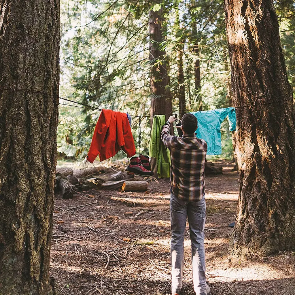 Say goodbye to a sagging clothesline with the Gear Aid Travel Clothesline Taut Line Kit. Whether it’s drying towels, hanging gear, or suspending lights, the kit’s heavy-duty 550 Paracord is designed for the rigors of the outdoors. It’s also long enough for hanging a bear bag and packs well for use as a travel clothesline or use it during hiking and backpacking trips. With the innovative Line Tensioners that feature numbered slots, a simple figure 8 knot is all that's needed to hang gear without drooping. Set up a tight camp line virtually anywhere with the Gear Aid Travel Clothesline Taut Line Kit.