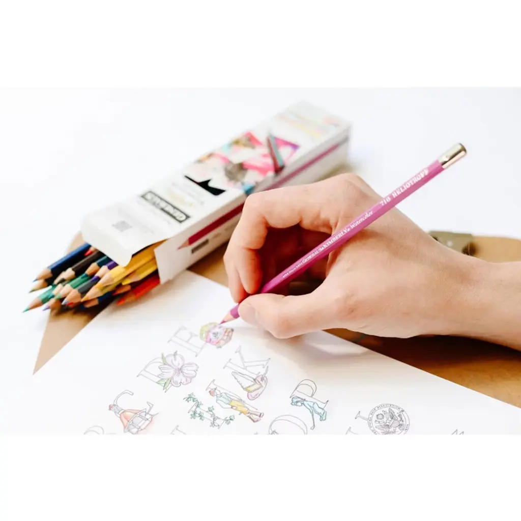 Generals Kimberly Watercolor Pencil Set features non-toxic water soluble leads that offers a watercolor-like vibrant color response. Pencil in hexagonal shape produces intense color when dipped into water while it can be used directly to draw into washes or the colors can be blend with a brush. Acid-free pencil is sold as 24 per set.