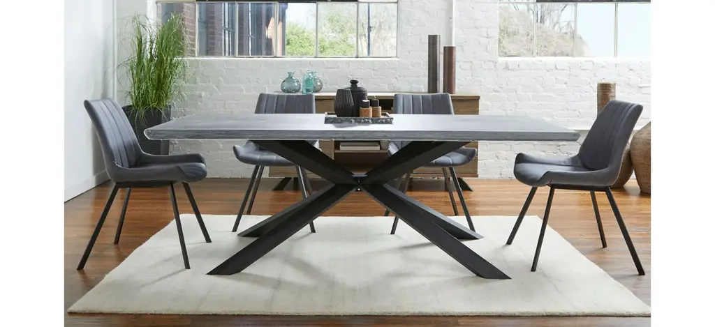 The Geneva Dining Table combines cutting edge style with form and function for a modern, borderline industrial look that's sure to impress your guests.