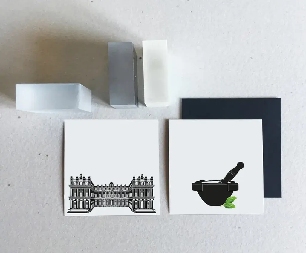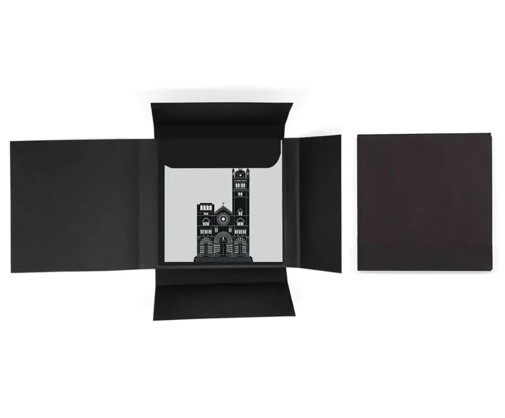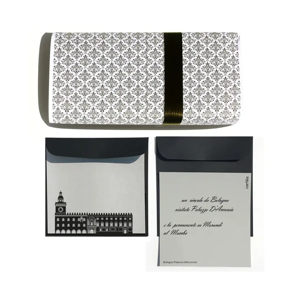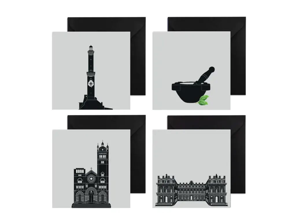 Kit made of paper containing 4 greeting cards with envelopes, graphics dedicated to the main monuments of the city of GENOVA. Available in color and gray versions.