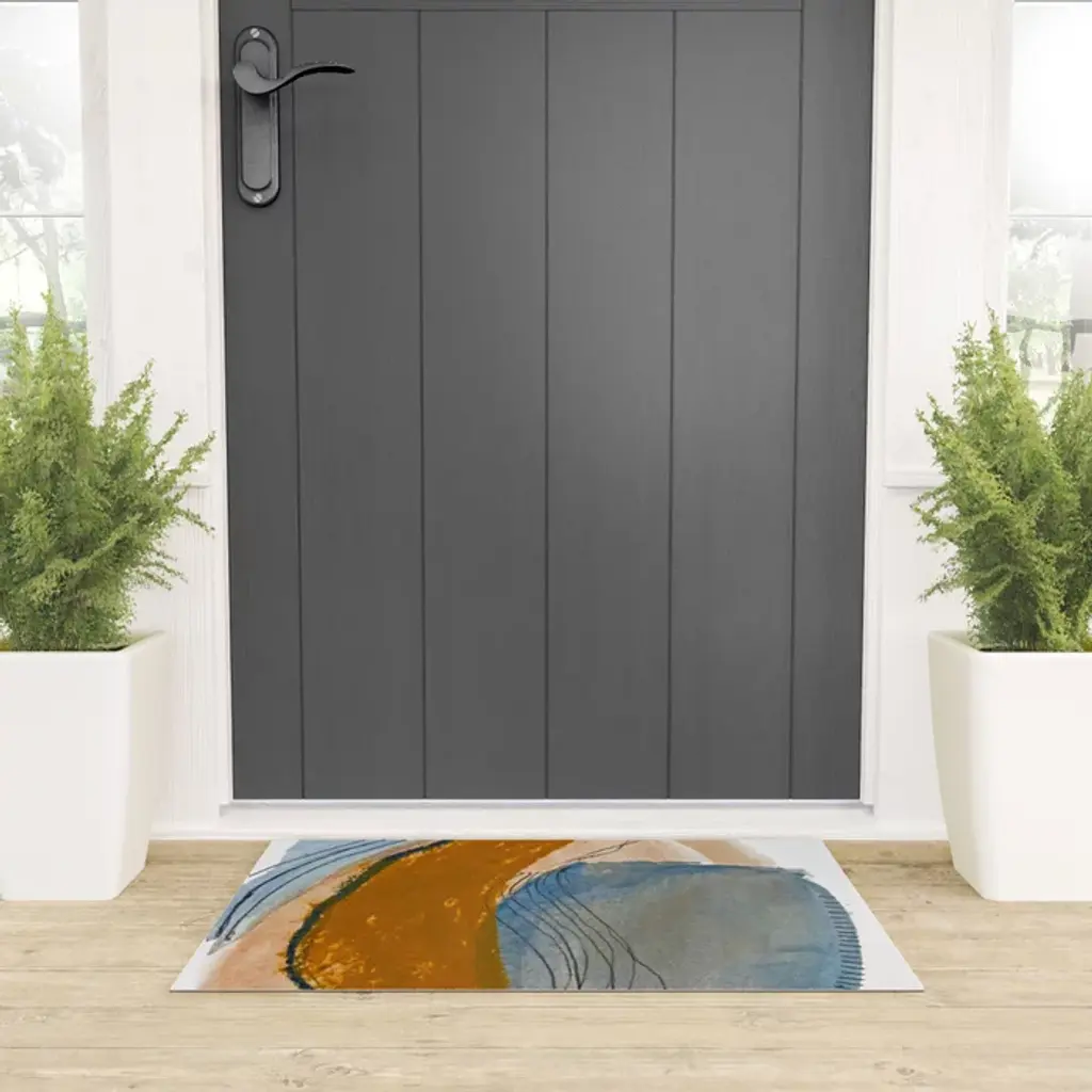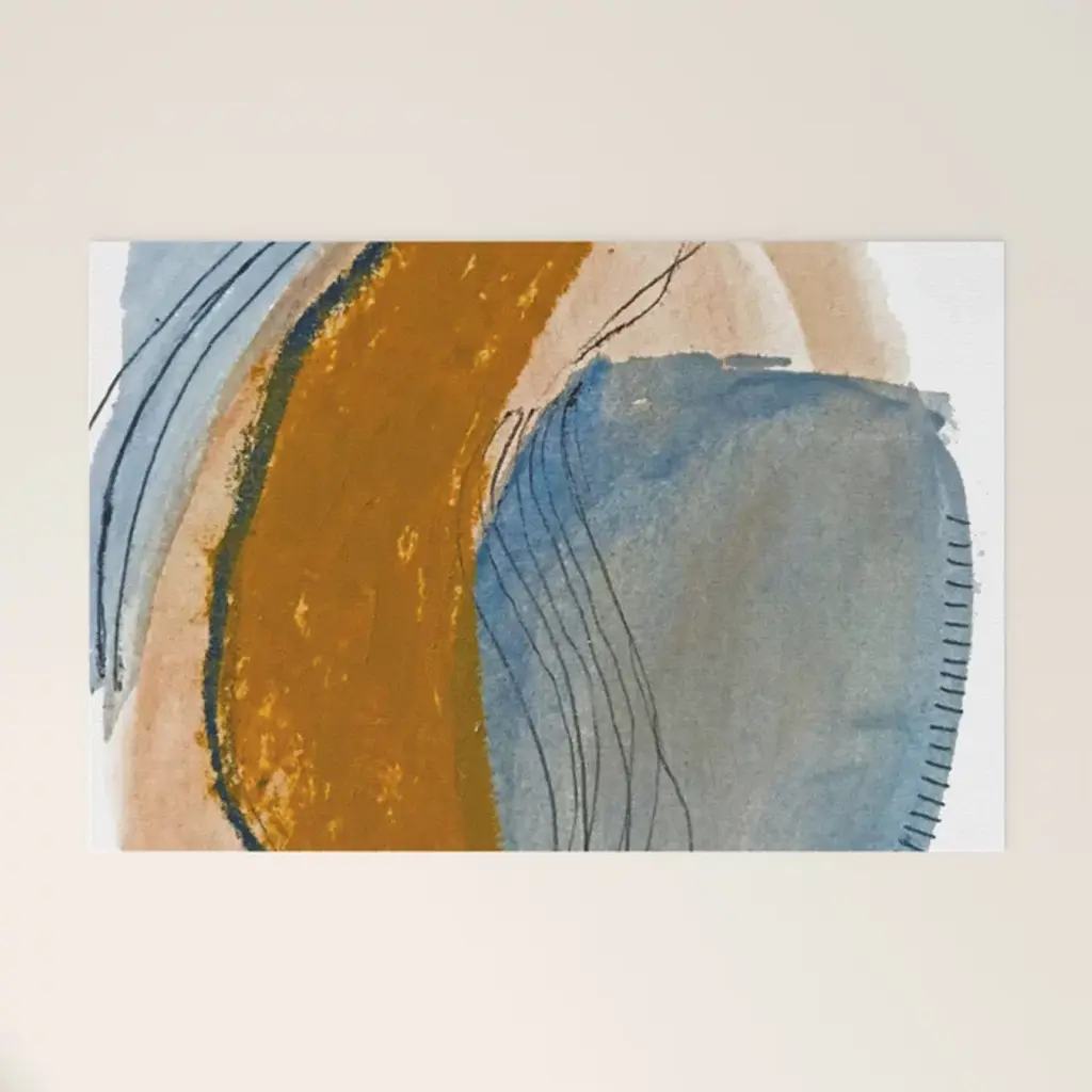 Gentle Breeze: A Minimal, Abstract Mixed-Media Piece In Blues And Tans By Alyssa Hamilton Art Welcome Mat