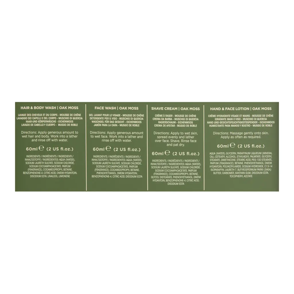 Ideal for gifting and travel, this men's grooming kit contains all the toiletries he needs for a weekend away, each one in a flight-friendly 2-oz. bottle. From a Nashville-based company committed to helping men take control of their daily maintenance, the hair and body wash, face wash, shave cream and hand and face lotion come in a rich and earthy oak moss scent. The products are neatly contained in a metal tin that can be used again and again.