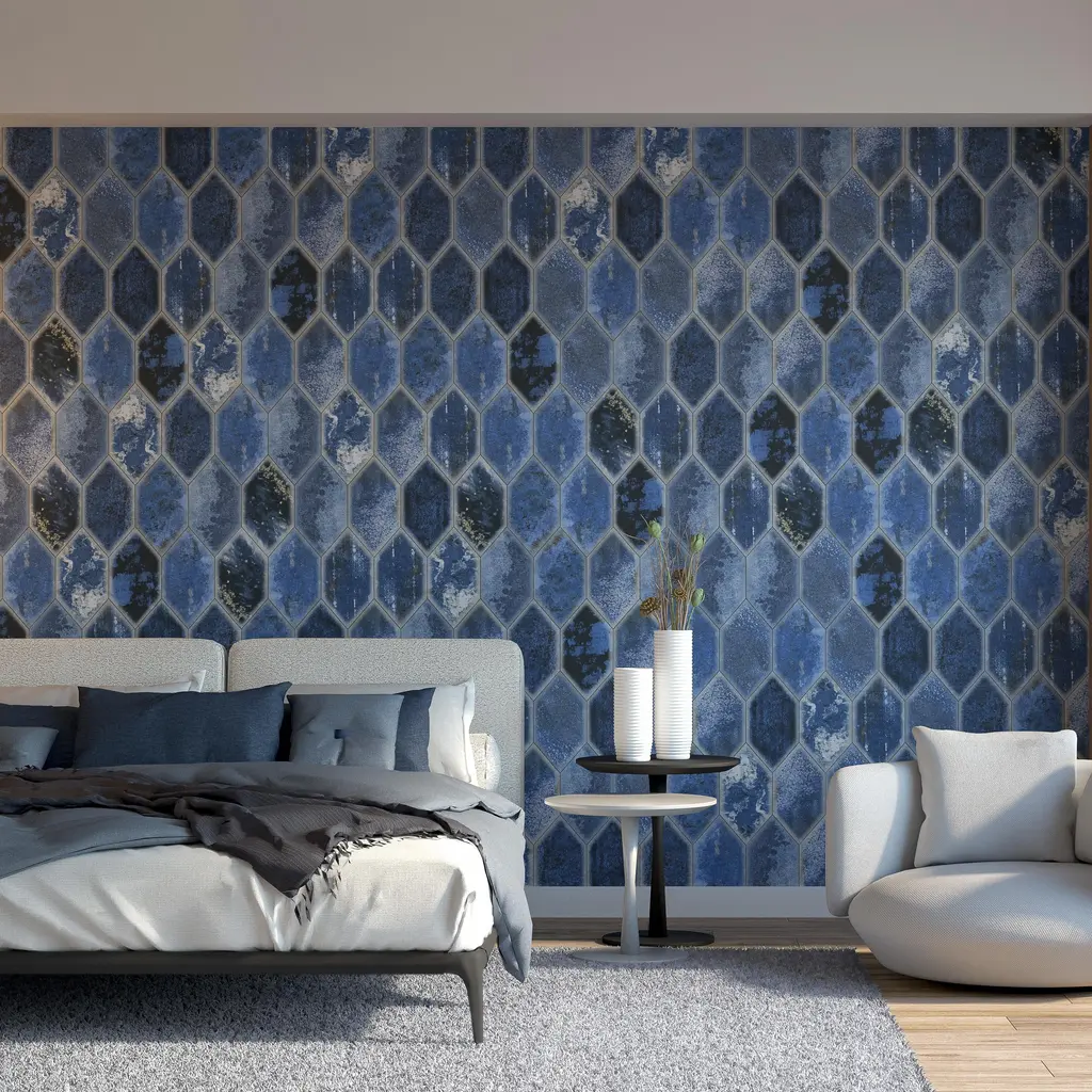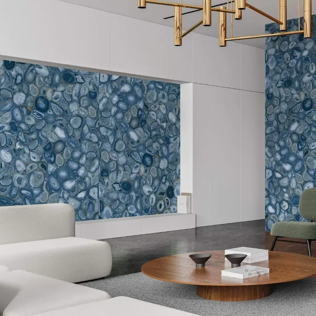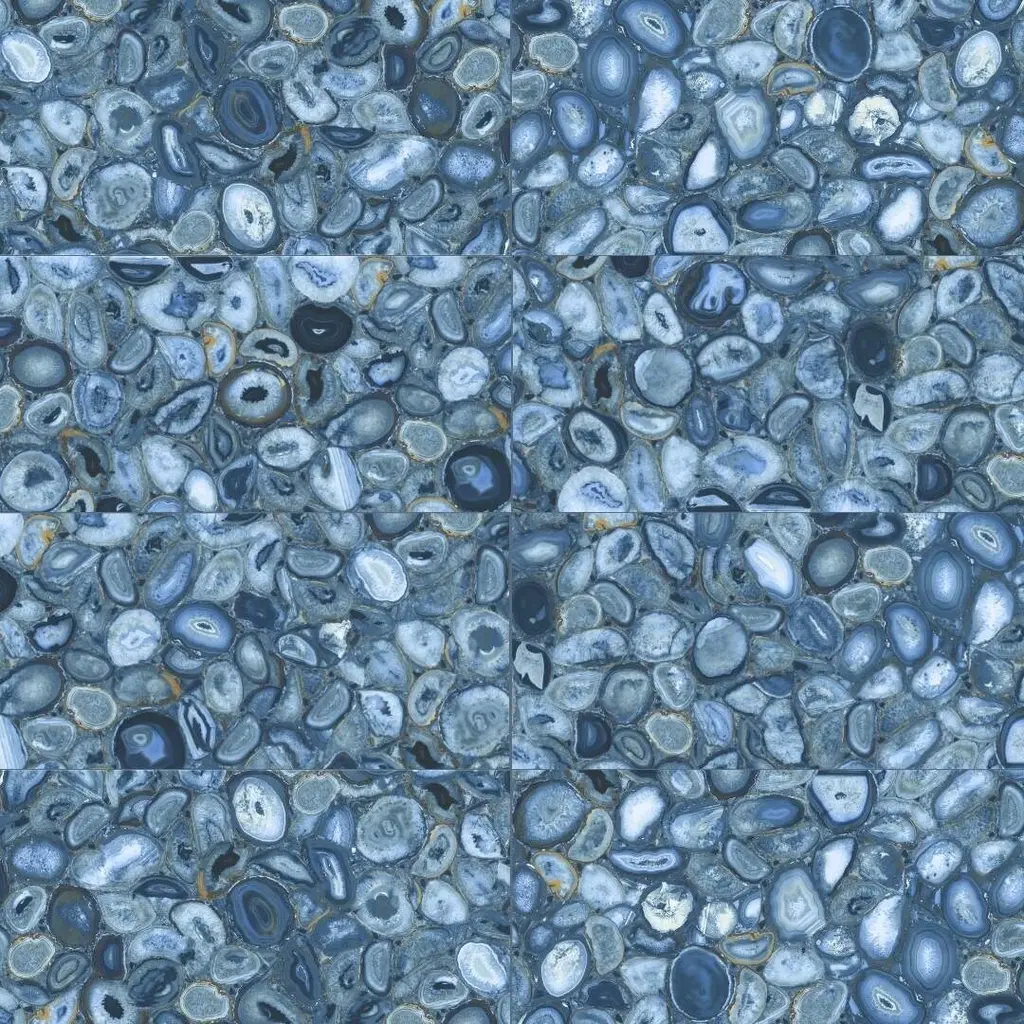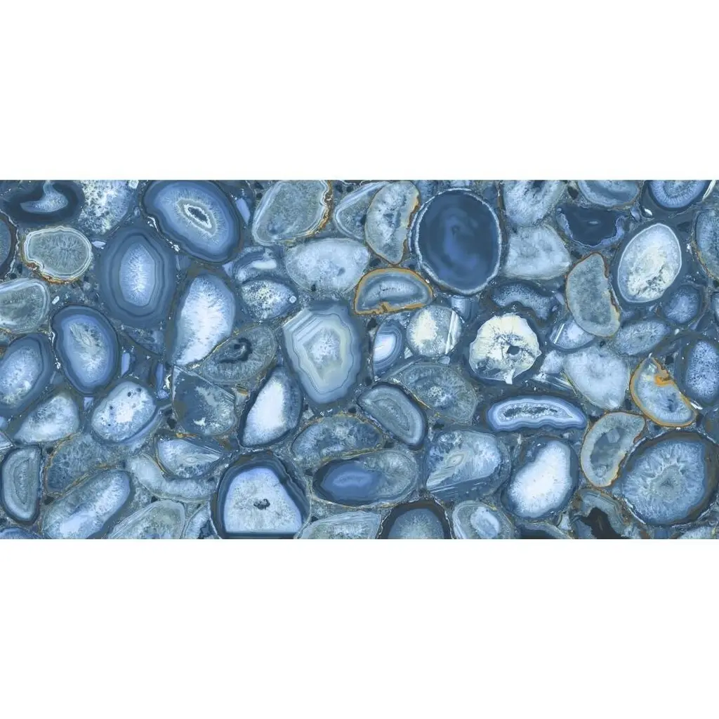 The Geode collection showcases exceptional craftsmanship, with large-format porcelain tiles featuring detailed geode patterns. Subtle blue tones swirl across the surface, offering a calming yet striking contrast, while fine gold accents outline each geode, adding an element of understated elegance. This collection brings depth, uniqueness, and a touch of refined sophistication to any environment, making it a timeless and captivating focal point for contemporary interiors. FEATURES: Stone-look design featuring geode patterns with blue and gold accents Rectified edges for a seamless installation Polished finish with a sleek surface 24" x 48" large format size Made in Italy from durable porcelain A case of this product includes 2 pieces and covers 15.5 square feet Porcelain, singular, large format, rectangle, polished, stone look, rectified floor and wall tile Impervious and waterproof; Not suitable for outdoor use but are resistant to most elements Polished finish with a V4 substantial variation Ideal for bathrooms, showers, kitchens, floors, walls Approved for residential and commercial installations Easy to install 24 inches x 48 inches decorative porcelain tile This product has a PEI rating of 2 ([endurance] and hardness indicator), and therefore is suited for walls and light-traffic floors DIMENSIONS: Individual tile size: 24 inches L x 48 inches W Surface area per carton: 15.5 square feet Pieces per carton: 2 pieces Sample tile size: 4 inches L x 4 inches W