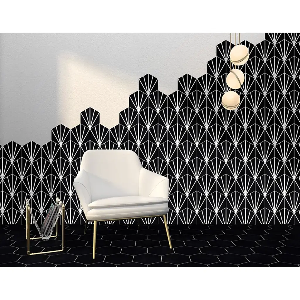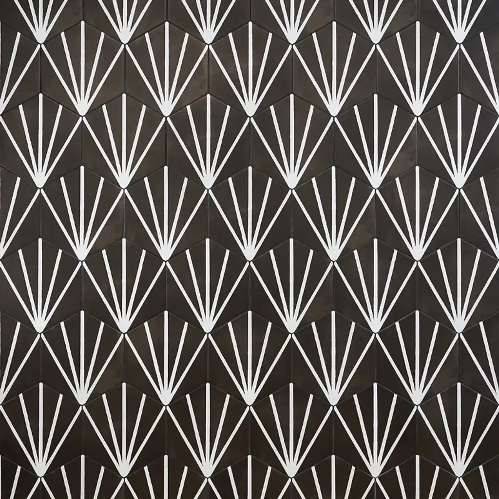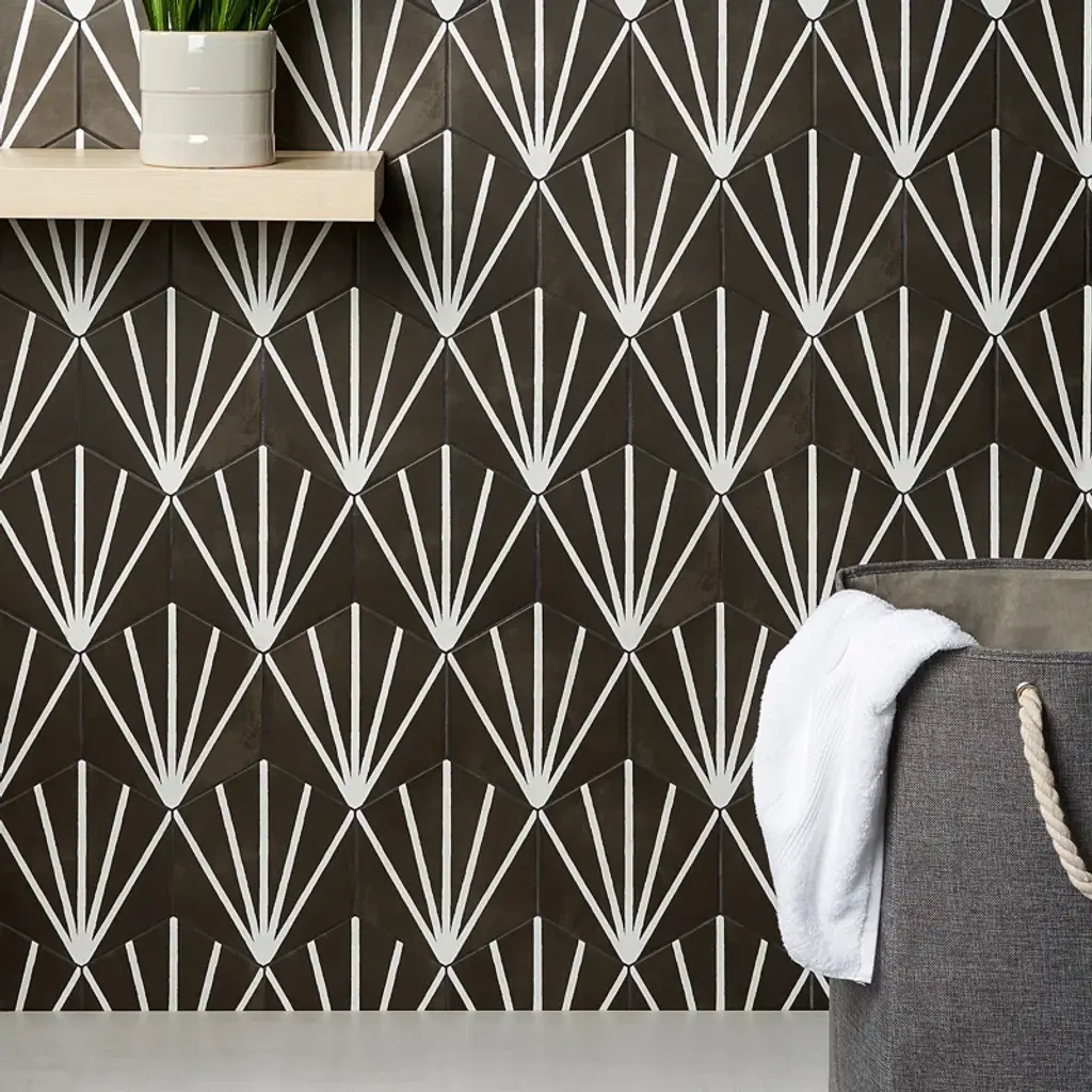 A moody black hue harmonizes with the GeoHex Tile. This GeoHex 8" Porcelain Wall & Floor Hexagon Tile is best for those with a penchant for fashionable installments with its matte finish. Perfect to use on walls or floors to create a substantially stylish space.