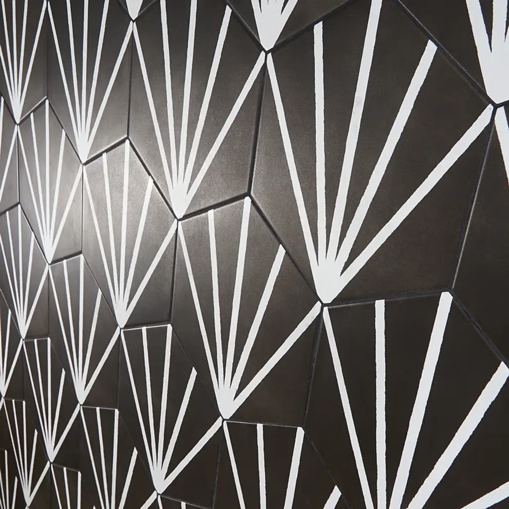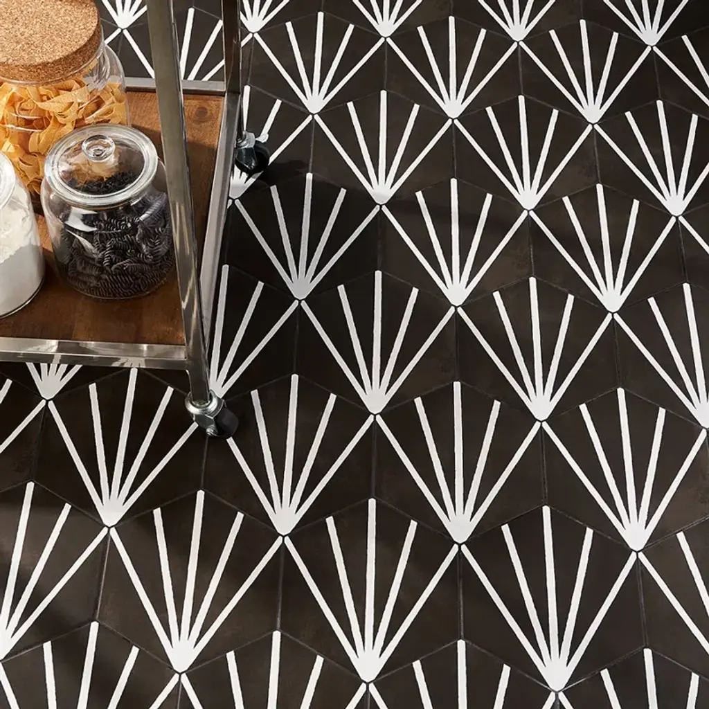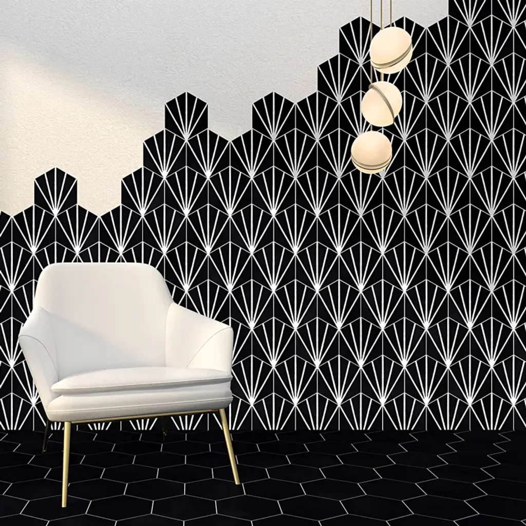 A moody black hue harmonizes with the GeoHex Tile. This GeoHex 8" Porcelain Wall & Floor Hexagon Tile is best for those with a penchant for fashionable installments with its matte finish. Perfect to use on walls or floors to create a substantially stylish space.
