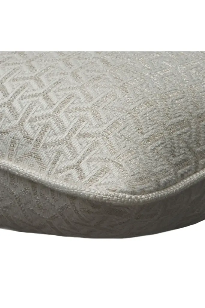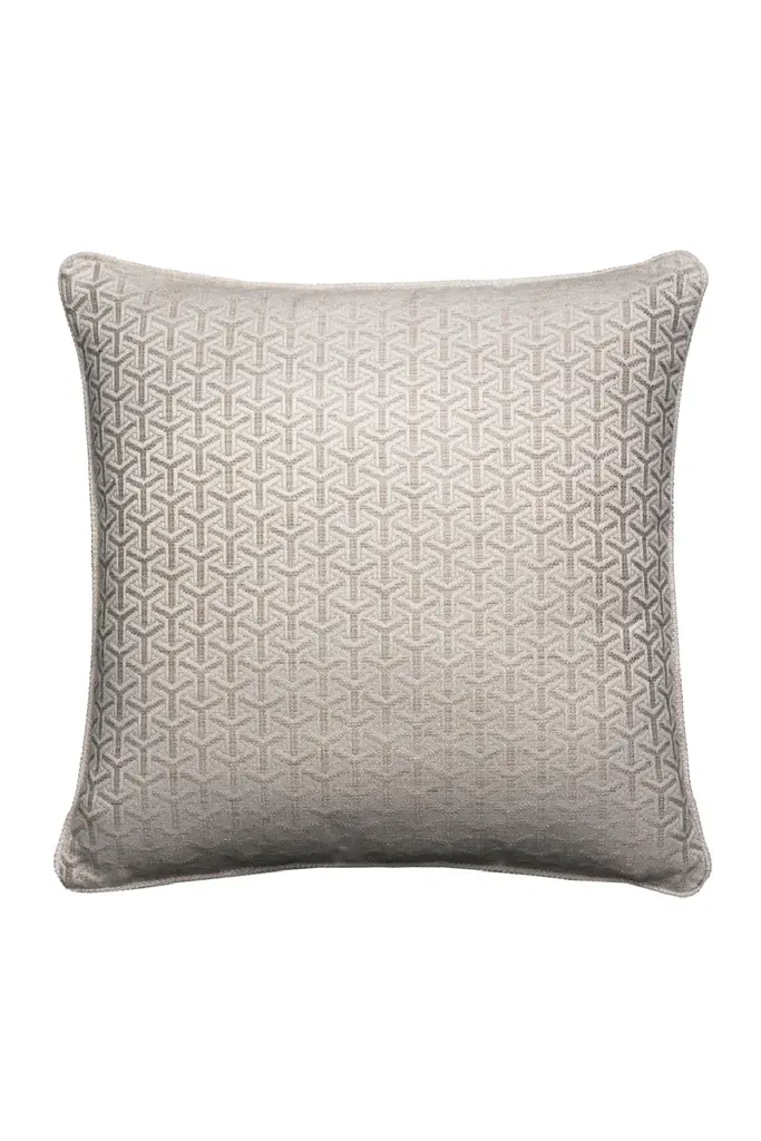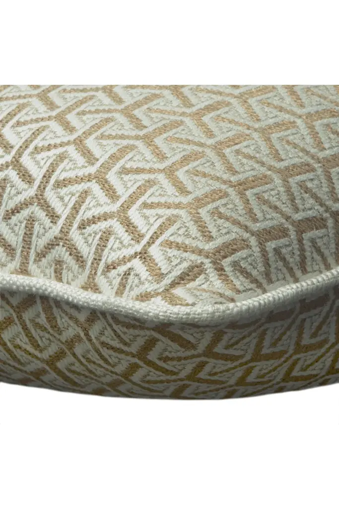 This interlocking geometric pattern in a golden almond color, beautiful pearly neutral shade, and cool gray tone of Andrew Martin Monte has a slight metallic sheen and has been paired with plain cream piping for a sophisticated edge. Pair with other cushions from the Brindisi collection to incorporate some of southern Italy's rustic elegance into your own home.