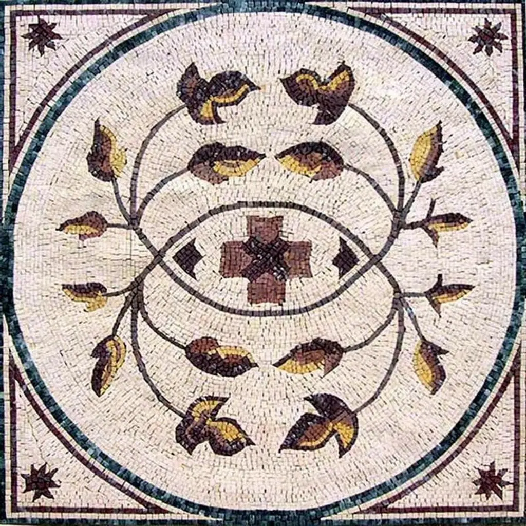 Invite color and pattern into your favorite spaces with the Cyprian geometric floral square. This handset stone mosaic showcases green lilies on light yellow fields and will decorate your walls or brighten your decorative tile floors. Available in 4 standard sizes or get your mosaic custom sized to meet your project requirements. Sq.Ft. : 3.88Marble Count : 4300Backing: Your Mosaic comes on a mesh Backing Mosaic Uses: Floors, Walls both Indoor or Outdoor as well as wet placesTechnique: Handmade