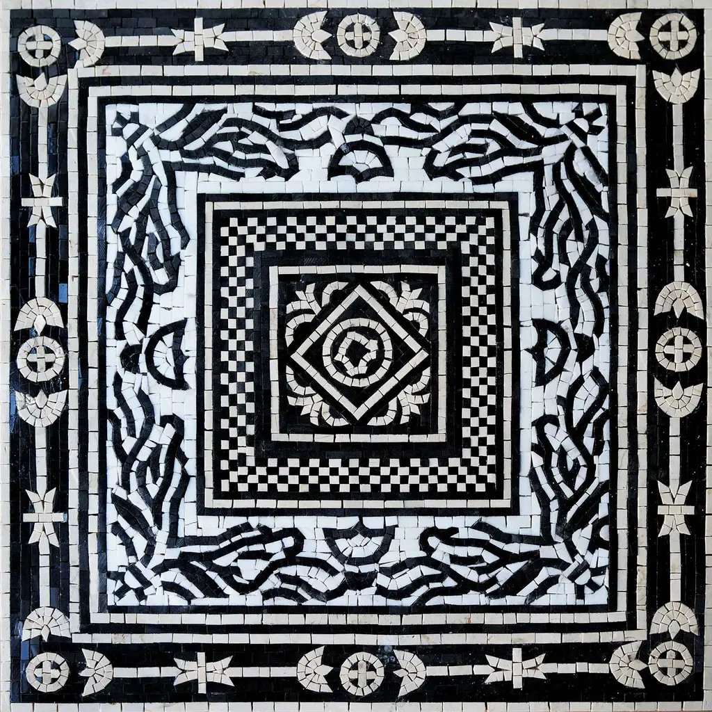 The Nala geometric flower mosaic panel makes a showpiece backsplash for your bath or kitchen. Featuring a simple lotus flower design to go with your black and white decor this handcrafted mosaic panel comes in 4 standard sizes. Custom sizes are available for the perfect fit. Sq.Ft. : 3.88Marble Count : 4300Backing: Your Mosaic comes on a mesh Backing Mosaic Uses: Floors, Walls both Indoor or Outdoor as well as wet placesTechnique: Handmade