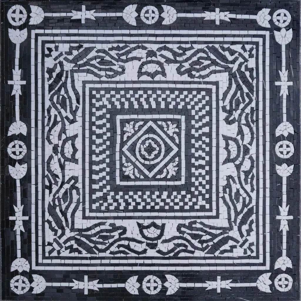 Transform your living space with the stunning Geometric Flower Mosaic Panel - Nala. This exquisite mosaic panel serves as a captivating showpiece that can elevate any bath or kitchen area. Designed with a striking lotus flower motif, the Geometric Flower Mosaic Panel - Nala is perfect for those who appreciate the elegance of black and white decor, blending seamlessly into a variety of interior styles.Handcrafted by skilled artisans, each mosaic panel is a testament to quality and creativity. The meticulous attention to detail results in a visually striking piece that not only enhances the aesthetic of your home but also tells a story of craftsmanship and dedication. The Geometric Flower Mosaic Panel - Nala is available in four standard sizes, ensuring that there’s a perfect fit for your space. If your dimensions require something unique, we also offer custom sizing to meet your specific needs.Ideal for use as a backsplash, this mosaic panel is not only functional but also a conversation starter for guests. The geometric design of the lotus flower adds a touch of sophistication and tranquility, making it a perfect choice for modern and traditional spaces alike. Whether you’re undergoing a complete renovation or simply seeking to refresh your home aesthetic, the Geometric Flower Mosaic Panel - Nala is a stylish addition that brings depth and character to any room.Invest in the beauty and elegance of the Geometric Flower Mosaic Panel - Nala and watch as it transforms your space into a work of art. Elevate your home decor with this unique piece that celebrates both nature and design. Don't miss the opportunity to own a stunning mosaic panel that combines artistry with functionality, making it a must-have for any discerning homeowner.