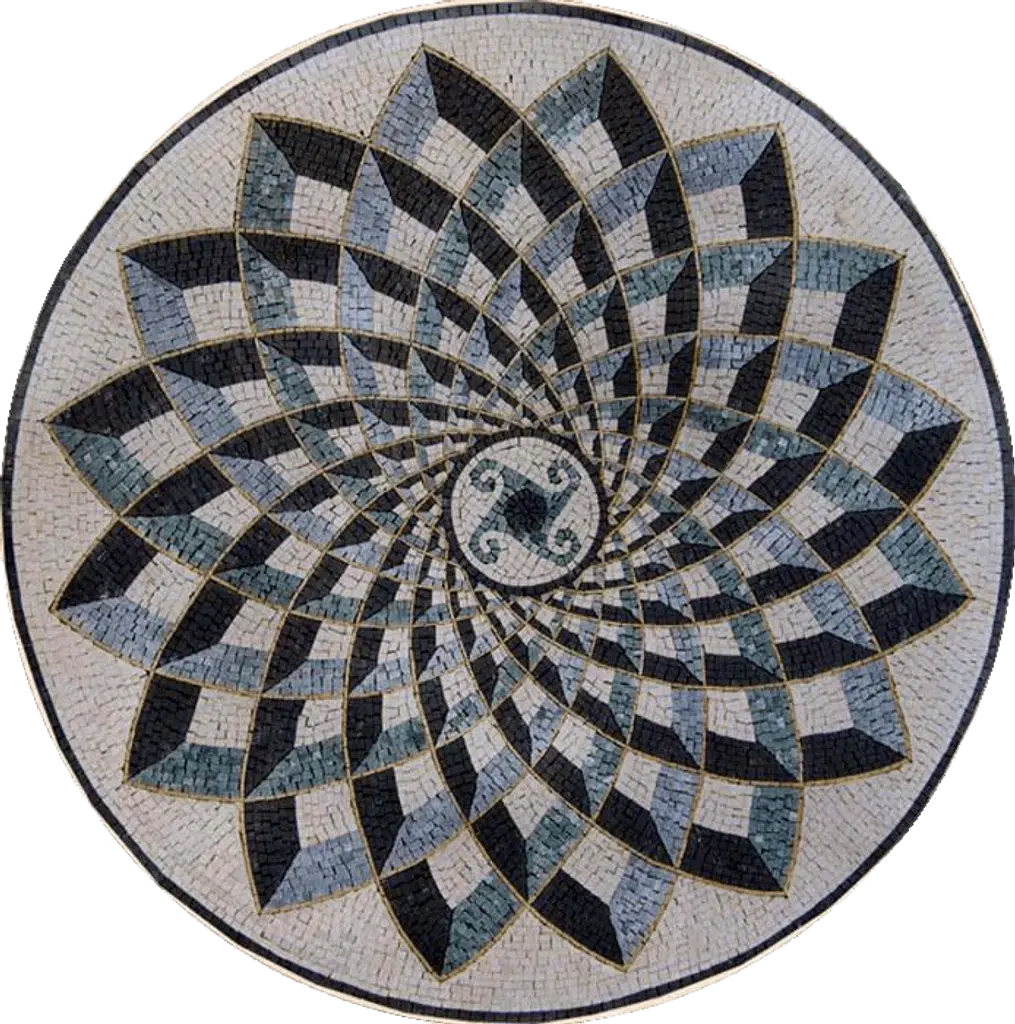 The Pinto III geometric medallion mosaic features sunburst design on an ivory background. Craft a dramatic three-dimensional table top or custom order this medallion in a large size for an entryway floor. Sq.Ft. : 3.88Marble Count : 4300Backing: Your Mosaic comes on a mesh Backing Mosaic Uses: Floors, Walls both Indoor or Outdoor as well as wet placesTechnique: Handmade