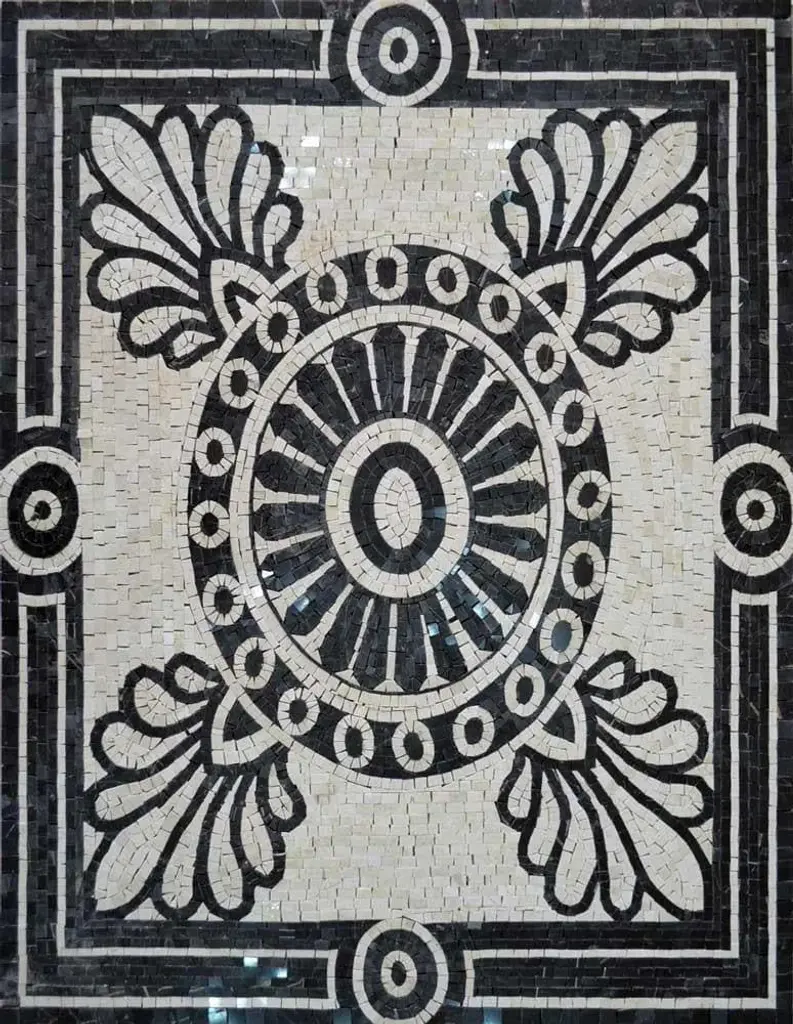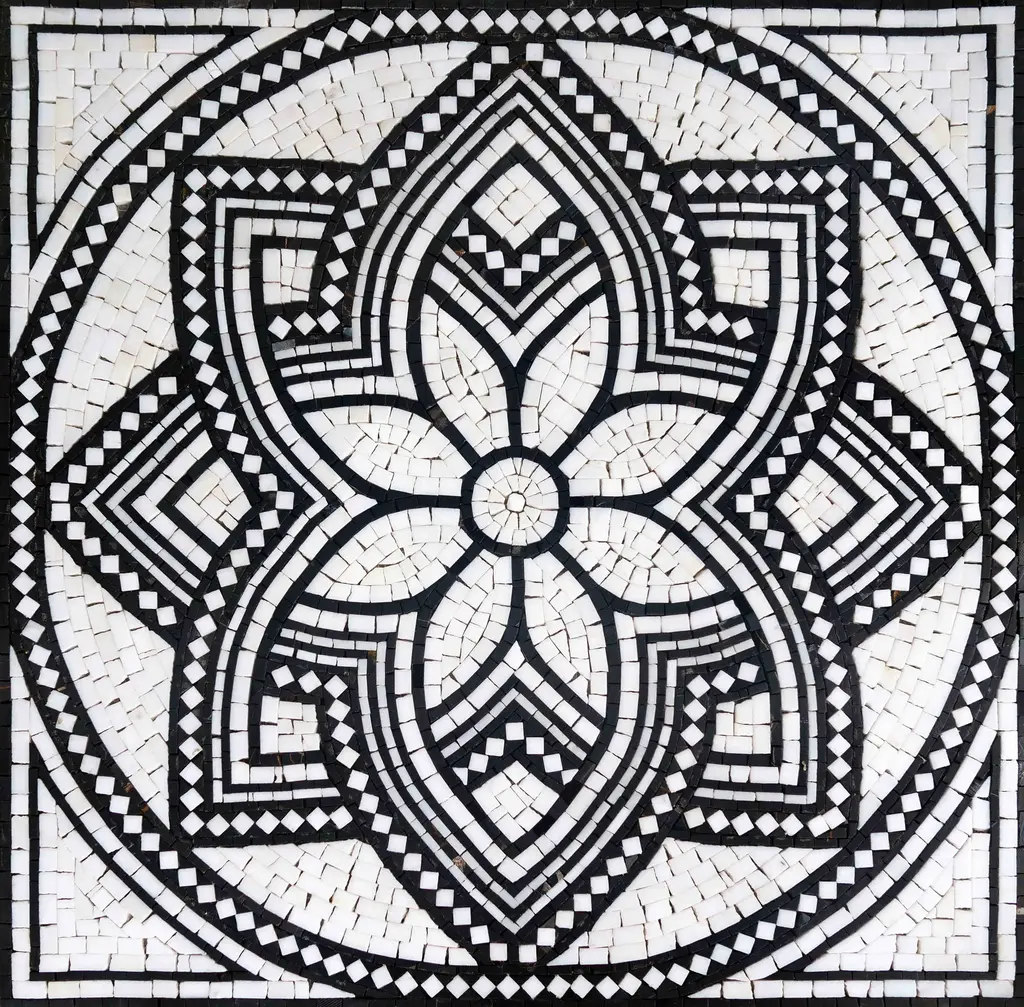 Introducing the Geometric Mosaic - Black & White Illusion, a stunning piece of artistry that brings a unique and contemporary flair to any space. This exquisite mosaic showcases a captivating black and white design, where geometrical shapes intricately come together to create a mesmerizing illusion that draws the eye and sparks conversation.Handcrafted from premium marble stones, the Geometric Mosaic - Black & White Illusion promises durability and elegance. Each piece is meticulously created to ensure that every tile fits perfectly, resulting in a seamless and striking pattern. This mosaic not only serves as a decorative element but also offers functionality, making it suitable for both walls and floors.Transform your living room, dining area, or hallway with this remarkable geometric mosaic that adds depth and character to your interior design. The timeless black and white color scheme makes it versatile enough to complement any decor style, from modern minimalism to classic elegance. Moreover, the illusionary effect created by the geometric shapes enhances the visual interest and sophistication of your space.Easy to install and maintain, the Geometric Mosaic - Black & White Illusion is designed for long-lasting beauty and practicality. Elevate your home with this stunning piece that reflects your unique style and taste. Embrace the artistry of geometric patterns and let the Geometric Mosaic - Black & White Illusion transform your environment into a work of art.