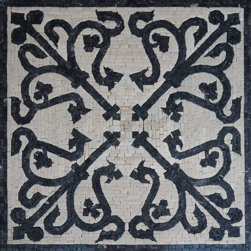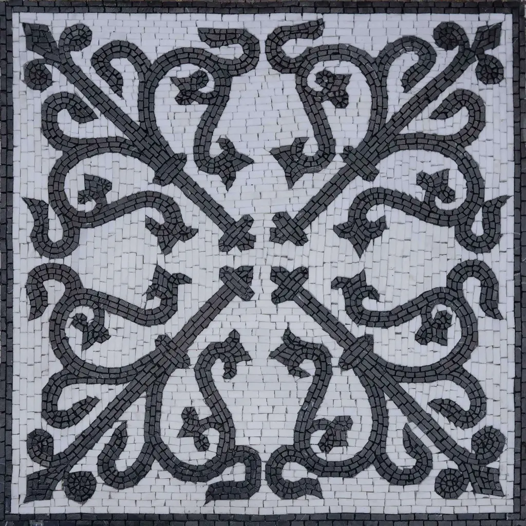 Introducing the Geometric Mosaic - Lila VI, a stunning piece of artistry that effortlessly transforms any space into a visual masterpiece. This meticulously handcrafted mosaic design, inspired by timeless geometric patterns, is perfect for those who appreciate the blend of modern aesthetics with classical techniques. The striking contrast of deep black and pristine white marble creates an eye-catching effect, ensuring that this mosaic stands out as a focal point in your home or outdoor area.Whether you are looking to enhance your walls or create a unique decorative tile floor, the Lila VI geometric mosaic is versatile enough to suit various applications. Its sophisticated design and clean lines make it an ideal choice for contemporary interiors, while also complementing traditional settings beautifully. Imagine the elegance it will bring to your living room, hallway, or garden patio – a true testament to style and craftsmanship.Handcrafted with precision and care, each piece of the Lila VI mosaic is unique, showcasing the natural beauty of the materials used. Made from high-quality black and white marble, this mosaic is not only aesthetically pleasing but also durable and weather-resistant, making it suitable for both indoor and outdoor use. You can confidently place it in any environment, knowing it will withstand the test of time.Upgrade your decor with the Geometric Mosaic - Lila VI and let its exquisite design speak for itself. Whether you are redesigning your space or adding a touch of character to your home, this mosaic will elevate your surroundings. Explore the endless possibilities of integration with your existing decor and experience the lasting beauty that only a handcrafted piece like the Lila VI can provide. Make a statement and express your unique style with this exceptional addition to your space.