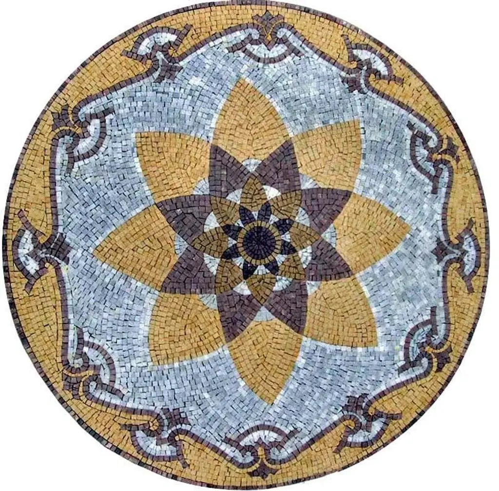 The Durrah geometric mosaic pattern is the perfect accent for your kitchen backsplash or decorative tile flooring. This classic stone mosaic medallion showcases a pleated starflower center and lilies in red blue and green. Comes with a mesh backing for easy installation on walls countertops or floors. Sq.Ft. : 3.88Marble Count : 4300Backing: Your Mosaic comes on a mesh Backing Mosaic Uses: Floors, Walls both Indoor or Outdoor as well as wet placesTechnique: Handmade
